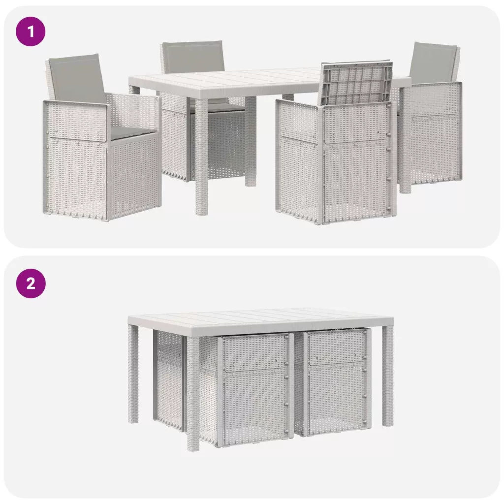 - Stabil szerkezet: Az asztal és a székek polipropilénből és műanyagból készültek, így stabil és megbízható a mindennapi kültéri használatra. Időjárásálló és UV-álló, amitől a garnitúra jól bírja az időjárás viszontagságait.