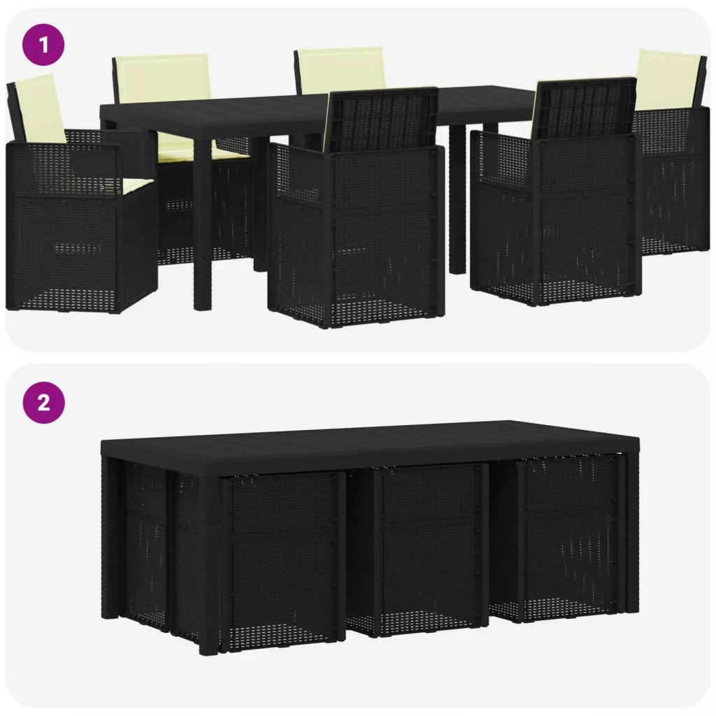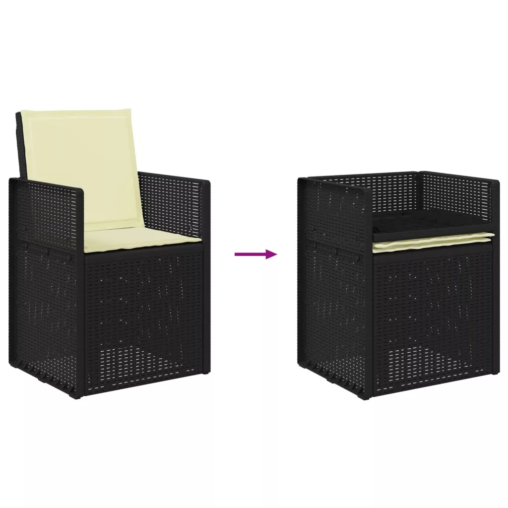 - Visszahajtható dizájn: A lehajtható háttámla lehetővé teszi, hogy a székek könnyen behúzhatók legyenek az asztal alá, így helyet spórolhatsz. Ez a praktikus megoldás segít rendben tartani a kültéri területeket, amikor épp nem használod.