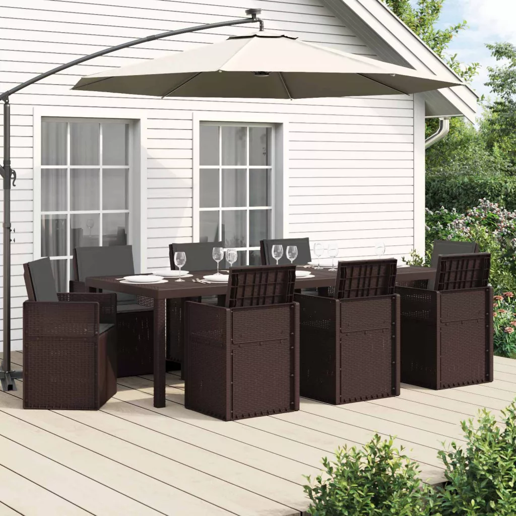 - Sokoldalú használat: Ez az étkezőgarnitúra bármilyen kültéri beállításhoz passzol, tökéletes teraszokon, kertekben és udvarokon minimalist zár-inspírozott dizájnnal a különböző alkalmakkor.