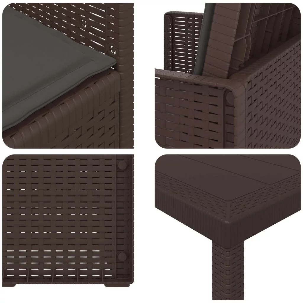 - Stabil szerkezet: Az asztal és a székek polipropilénből és műanyagból készültek, így stabil és megbízható a mindennapi kültéri használatra. Időjárásálló és UV-álló, amitől a garnitúra jól bírja az időjárás viszontagságait.