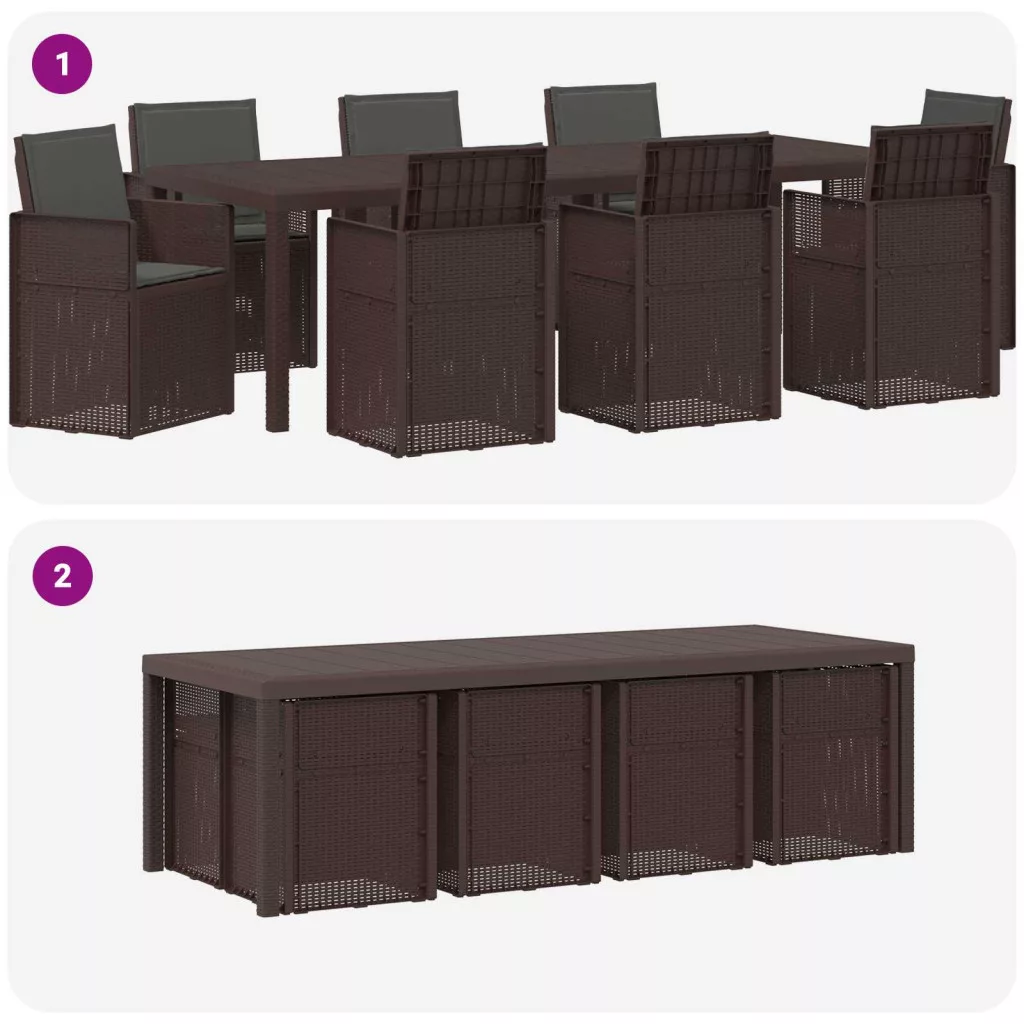 - Visszahajtható dizájn: A lehajtható háttámla lehetővé teszi, hogy a székek könnyen behúzhatók legyenek az asztal alá, így helyet spórolhatsz. Ez a praktikus megoldás segít rendben tartani a kültéri területeket, amikor épp nem használod.