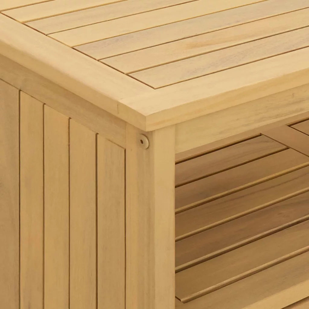- Funkcionális tárolópolcok: Az asztal praktikus polcokkal van felszerelve, amik rengeteg tárolóhelyet biztosítanak a kertekben, teraszokon vagy nappalikban. A felhasználók könnyedén rendszerezhetik a könyveket, dekorációs elemeket vagy akár kerti eszközöket. Ez a sokoldalú darab jól alkalmazkodik a különböző igényekhez, és segít a rend megtartásában.