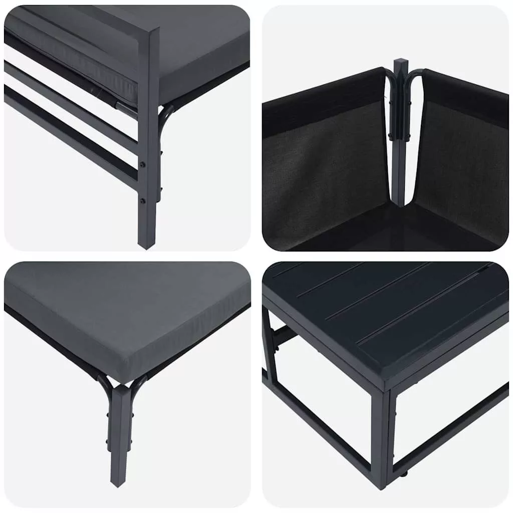 - Gondosan megtervezett alkatrészek: Minden alkatrésze, beleértve a kültéri párnákat és a hab tölteteket, fokozzák a kényelmet és a funkcionalitást. A poliészter párnák kényelmesek és stílusosak, antracit színben—modern hatást keltve.