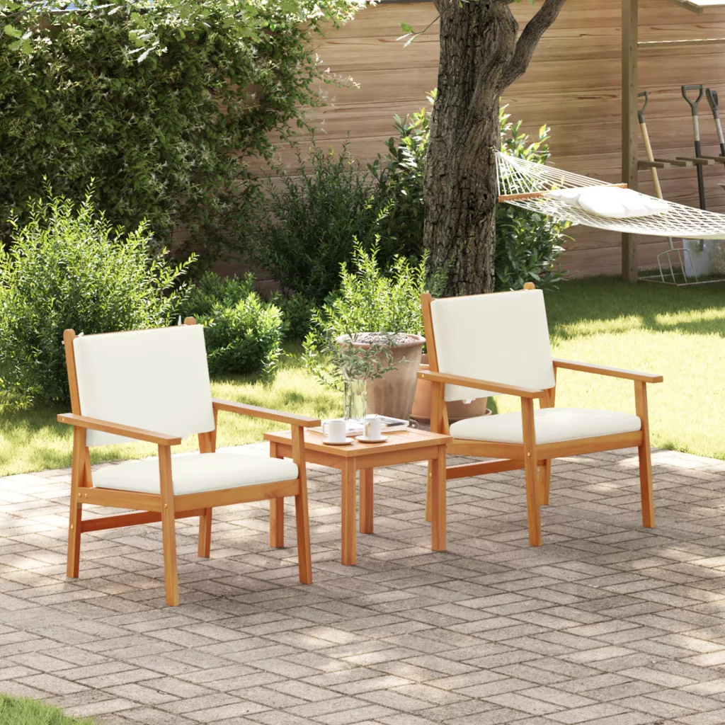 - Anyagok: Tömör akácfából készült, az szett robusztus vázzal és felületekkel, amik remekül ellenállnak a zord kültéri körülményeknek, miközben igazán letisztult és földes hatást adnak a dekorációdhoz. Ez a prémium fa lenyűgöző tartósságot biztosít, így megbízható választás a folyamatos kültéri használathoz. A fa felületek sima tapintást adnak a kültéri környezetednek.