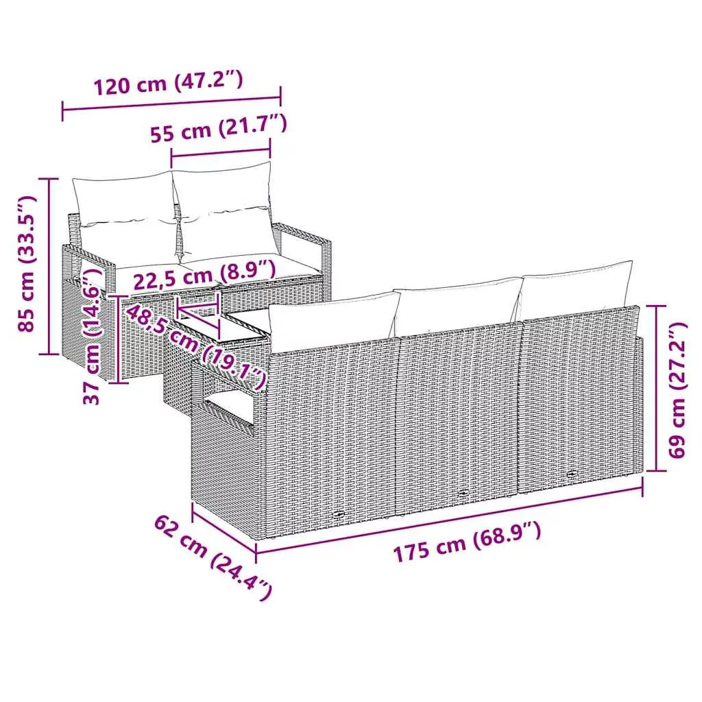 - Poli Rattan Anyag: Ez a kanapé garnitúra erős poli rattanból készült, ami jól bírja az időjárást és a napfény UV-sugarait, így hosszú életű és nem fakul ki. Az anyag szövött textúrája elegáns, és remekül illik minden kültéri térbe.
