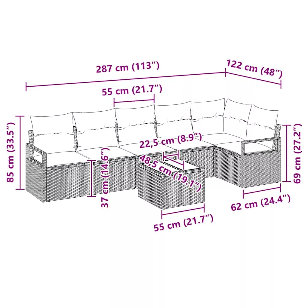 - Polirattan szerkezet: A Kerti Kanapé Szett kézzel készült Polirattan anyagból készült, ami megőrzi a stílust és a tartósságot. Ez az anyag bármilyen időjárásban megállja a helyét, a kanapé színei és ereje minden évszakban megmaradnak. A szövött textúra kényelmes ülőélményt nyújt és minimális karbantartást igényel.