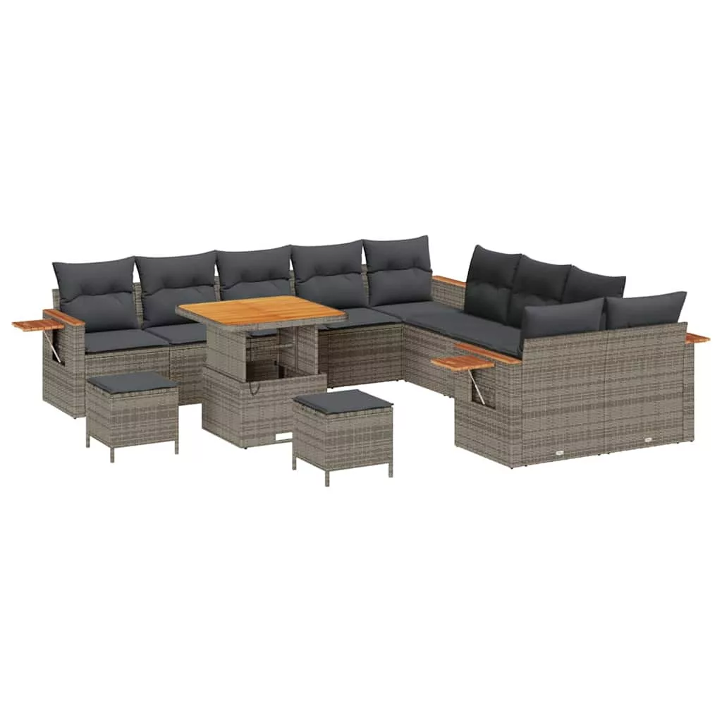 - Beépített elemek: A szett kényelmes ülést biztosít, lapos kartámmal, ami polirattanból készült, így lazán és ergonomikusan illeszkedik. Minden rész jól párnázott kültéri párnákkal van ellátva, amik könnyen levehetők mosás vagy csere céljából, így egyszerűen megőrizheti a higiéniáját. Az ülésfelület elegáns barna akácfa, stabil platformot nyújtva a italoknak vagy dekorációknak.