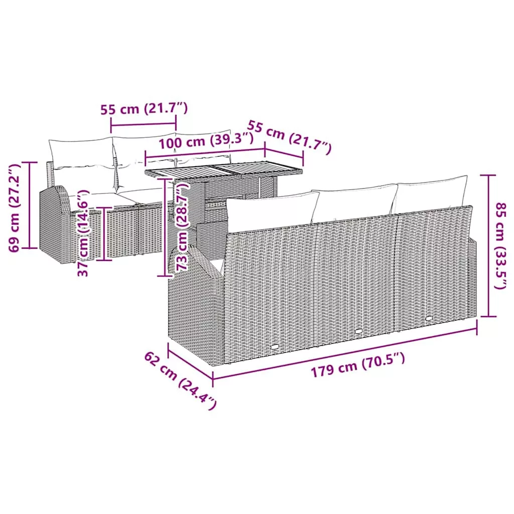 - Multifunkcionális Dizájn: A praktikus szett négy székből, két ülőrészből és egy akácfa asztalból áll, mindezt tárolási lehetőségekkel. Az alacsony asztal nemcsak étkezésre, hanem mint dekoratív elem is megállja a helyét. A székek tárolóhelyével egyszerűen közel tarthatod a párnákat vagy kerttartozékokat, így a kültéri élet rendezett és praktikus lehet.
