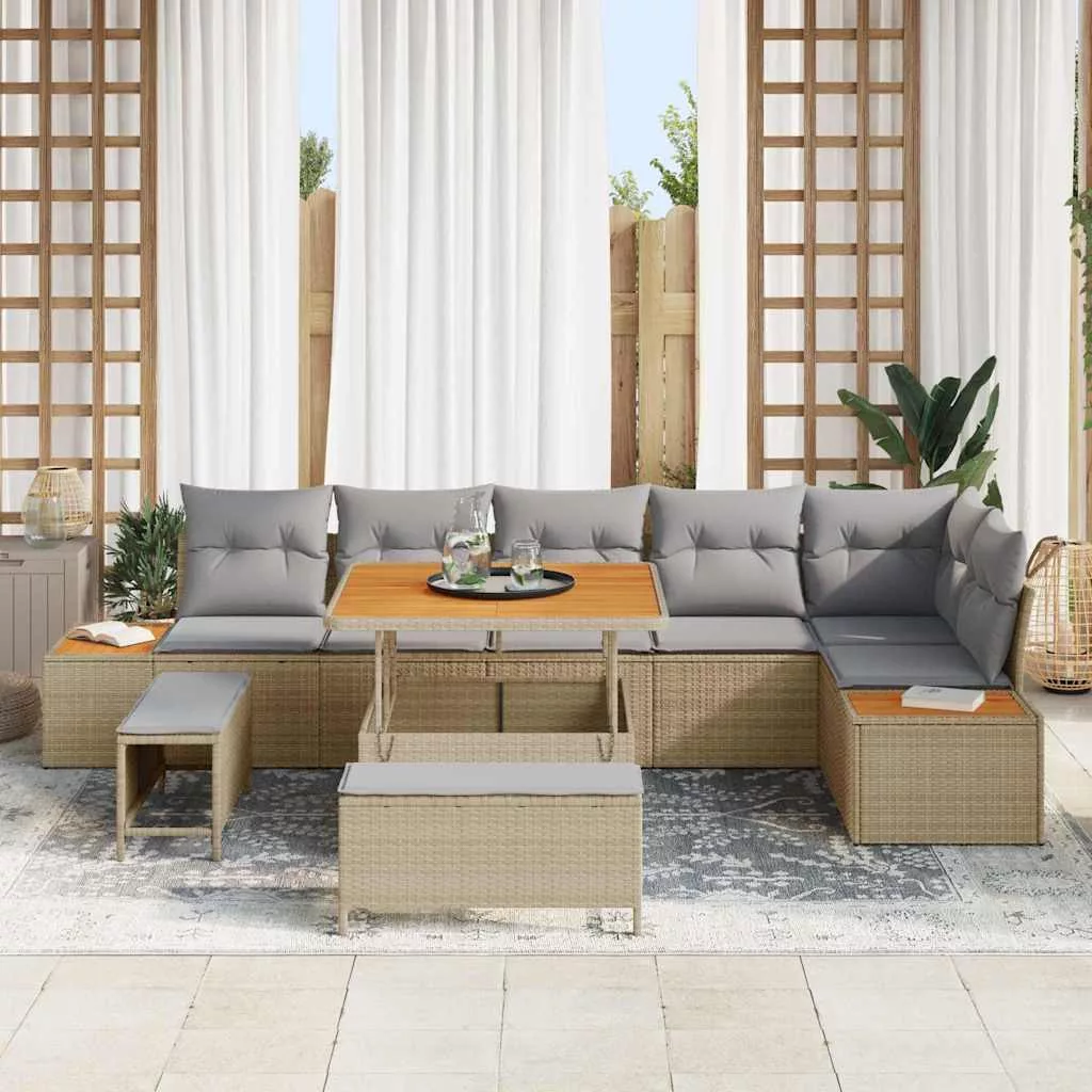 - Akácfa felület: A tömör akácfa természetes, meleg hatást biztosít. Elegánsan kontrasztál a poli rattan anyaggal, vizuális érdeklődést adva, miközben bővelkedik a funkcionális eleganciában. Ellenáll a nedvességnek és a kártevőknek, így hosszú élettartamot és időtlen szépséget biztosít.