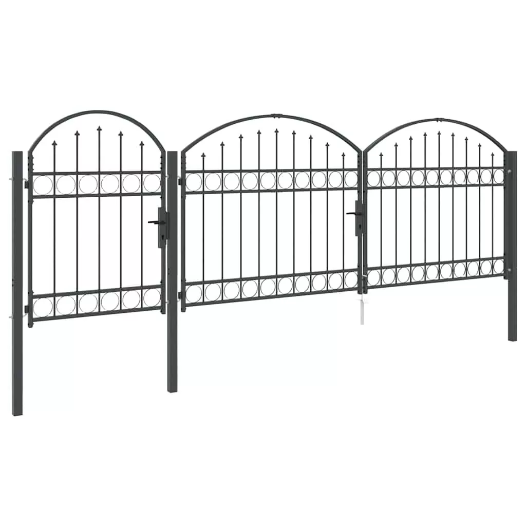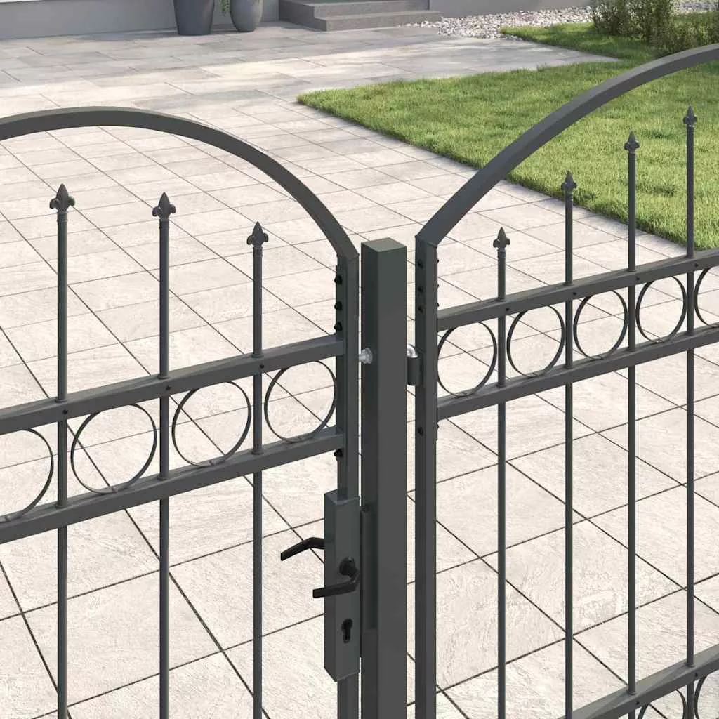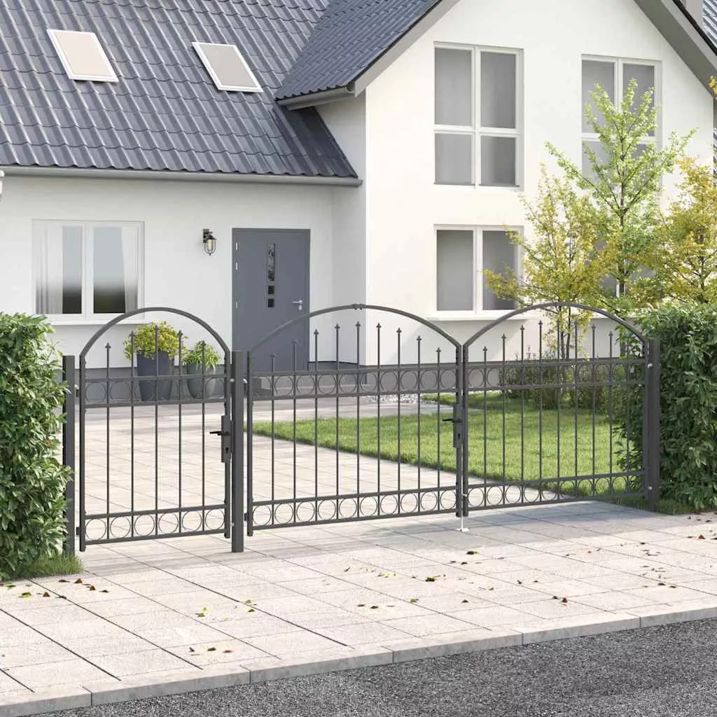 Ez a strapabíró kertkapu íves tetővel modern stílust képvisel, ami az egyszerűséget és a praktikát ötvözi. Tökéletes kültéri helyekhez, mint kertek és teraszok. Vízálló acélból készült, elegáns megjelenést biztosít, miközben biztonságot is ad a kerted területén. A letisztult dizájn szépen illik a kortárs tájakhoz, mind dekoratív, mind praktikus célokra.