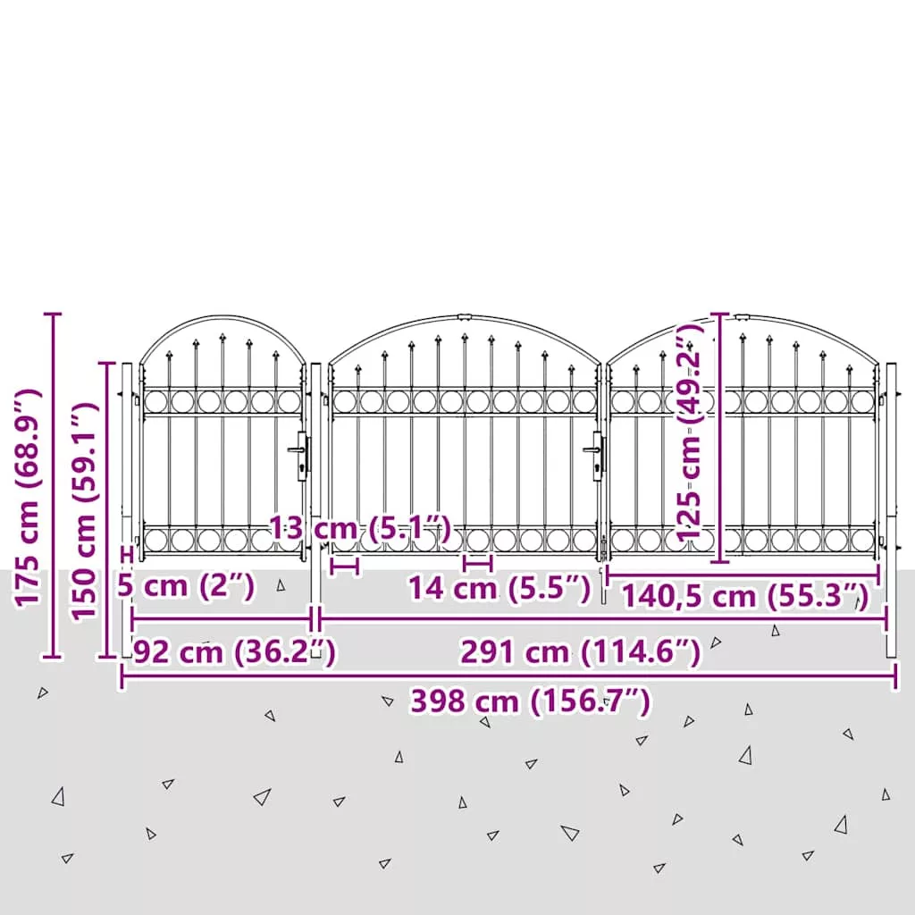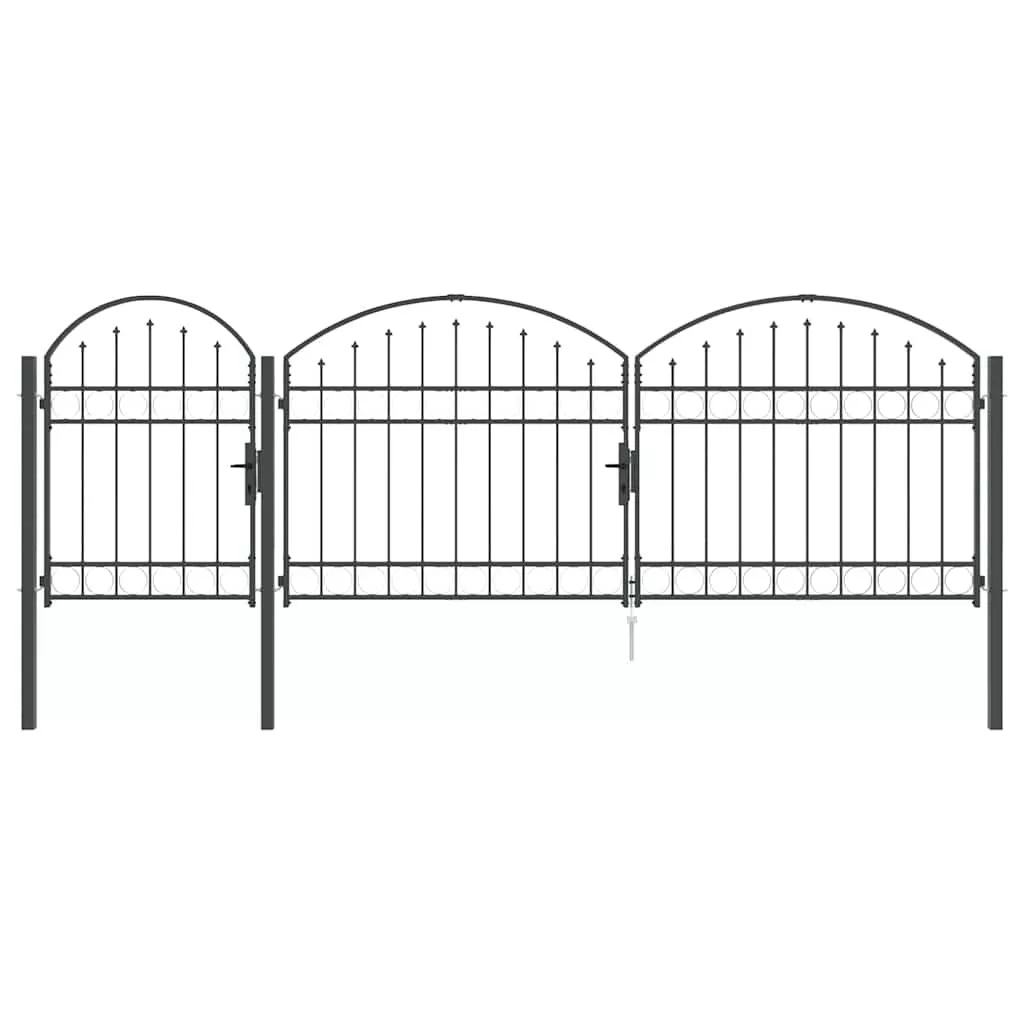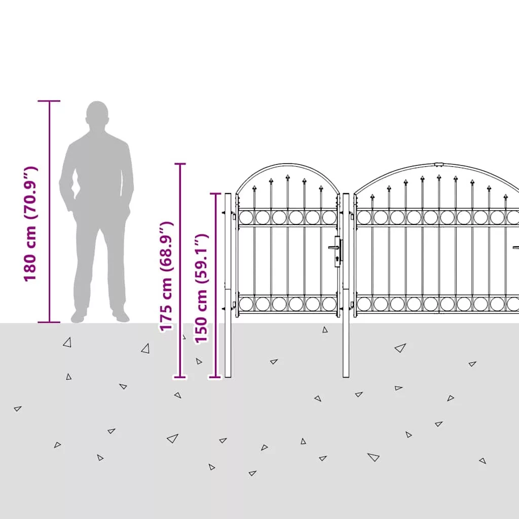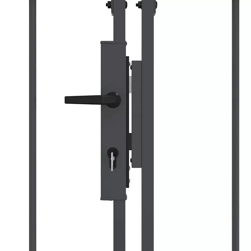 Ez a strapabíró kertkapu íves tetővel modern stílust képvisel, ami az egyszerűséget és a praktikát ötvözi. Tökéletes kültéri helyekhez, mint kertek és teraszok. Vízálló acélból készült, elegáns megjelenést biztosít, miközben biztonságot is ad a kerted területén. A letisztult dizájn szépen illik a kortárs tájakhoz, mind dekoratív, mind praktikus célokra.