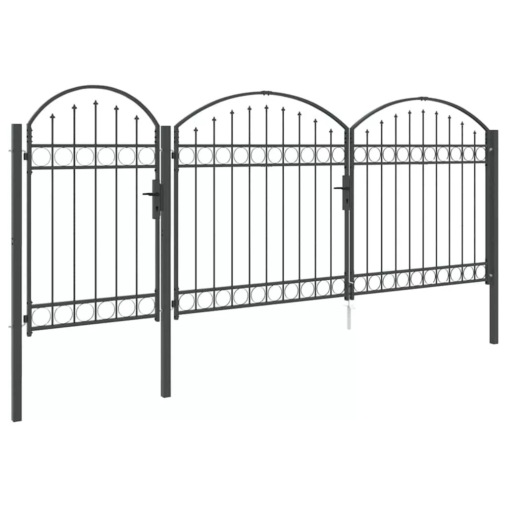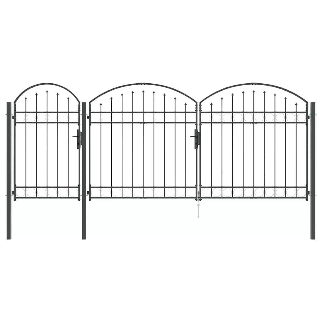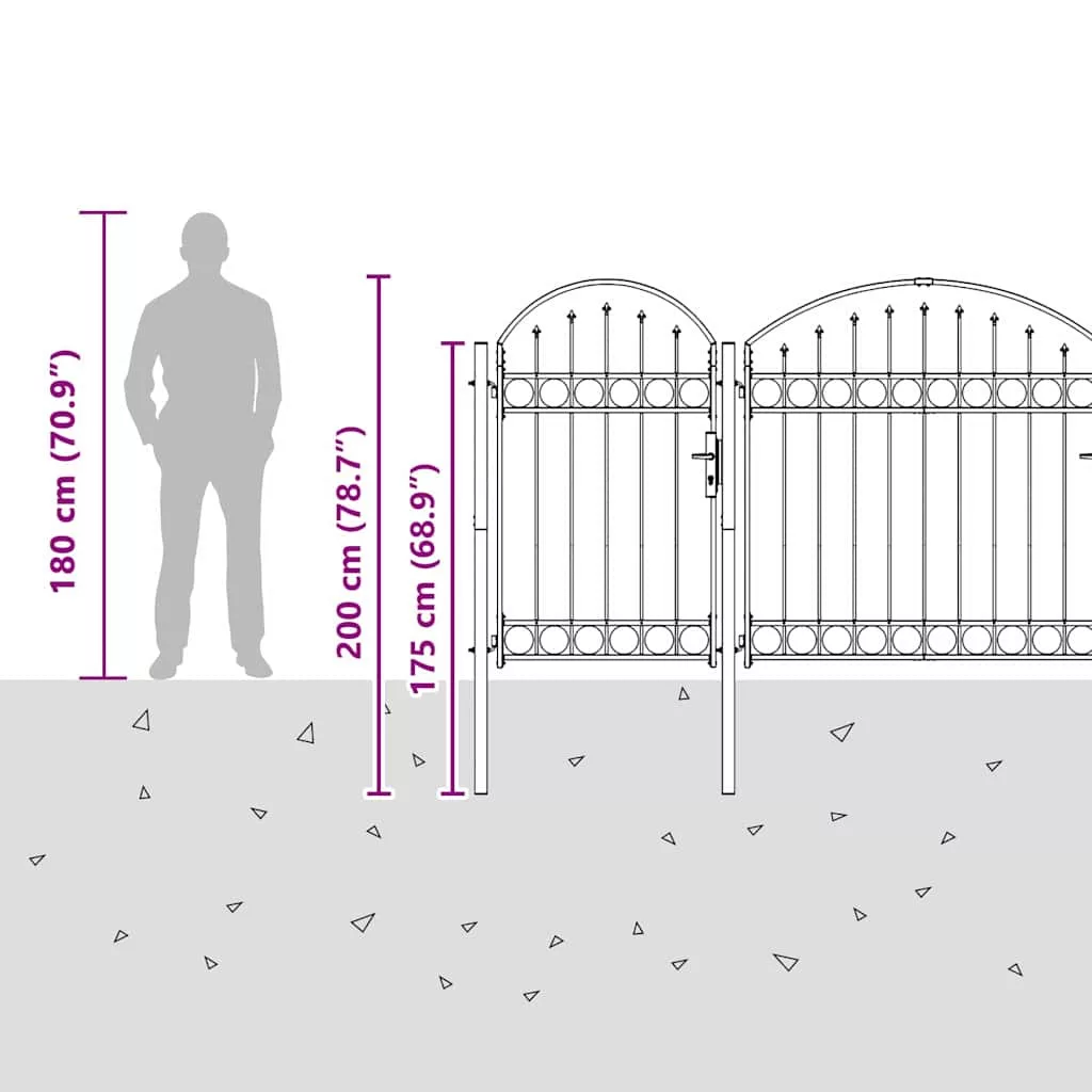 Ez a strapabíró kertkapu íves tetővel modern stílust képvisel, ami az egyszerűséget és a praktikát ötvözi. Tökéletes kültéri helyekhez, mint kertek és teraszok. Vízálló acélból készült, elegáns megjelenést biztosít, miközben biztonságot is ad a kerted területén. A letisztult dizájn szépen illik a kortárs tájakhoz, mind dekoratív, mind praktikus célokra.