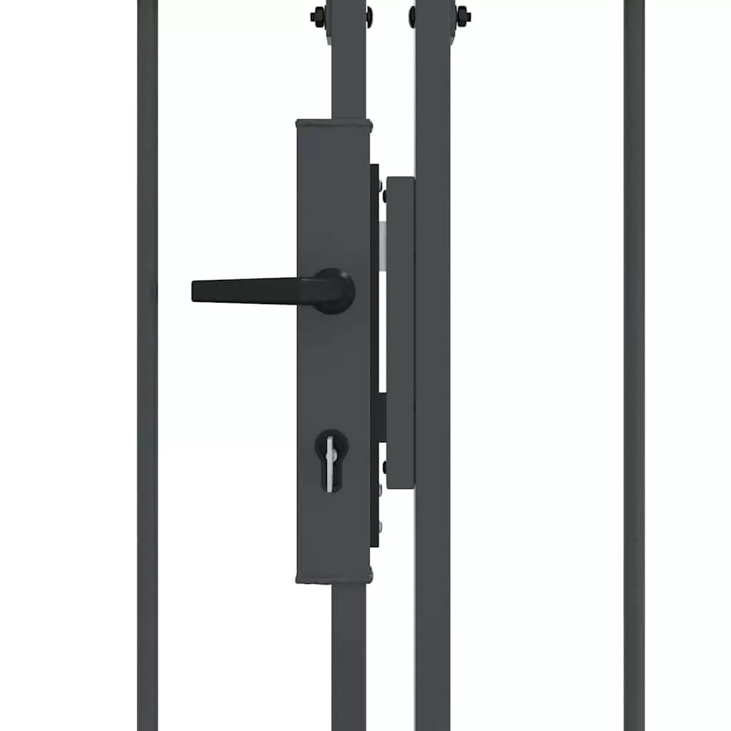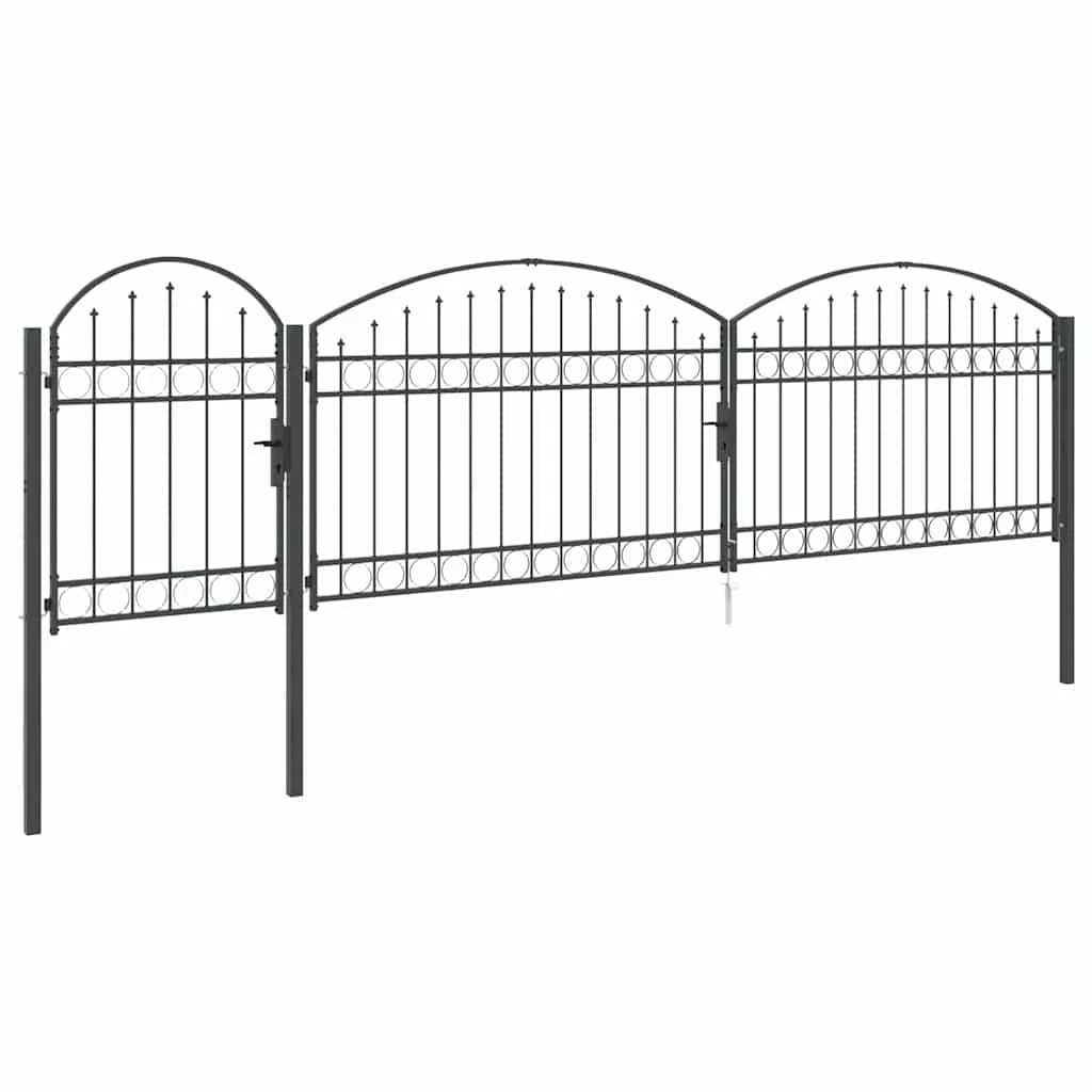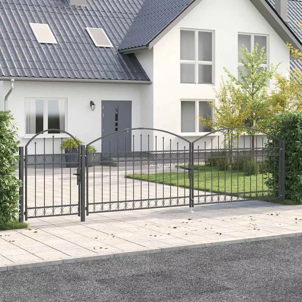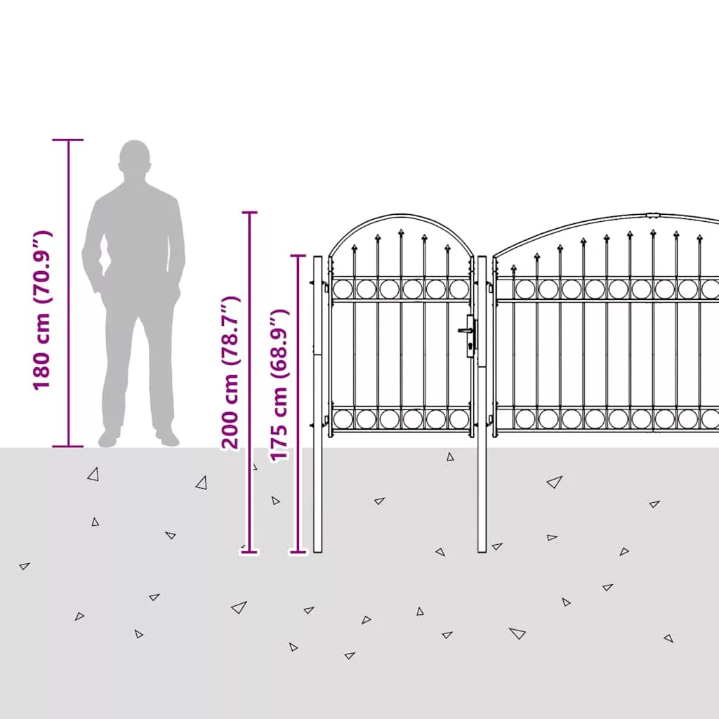 Ez a strapabíró kertkapu íves tetővel modern stílust képvisel, ami az egyszerűséget és a praktikát ötvözi. Tökéletes kültéri helyekhez, mint kertek és teraszok. Vízálló acélból készült, elegáns megjelenést biztosít, miközben biztonságot is ad a kerted területén. A letisztult dizájn szépen illik a kortárs tájakhoz, mind dekoratív, mind praktikus célokra.