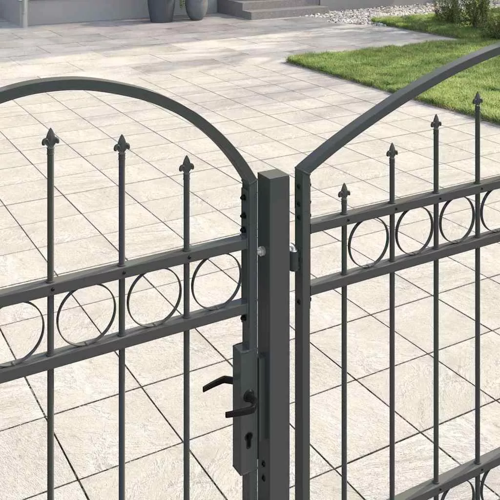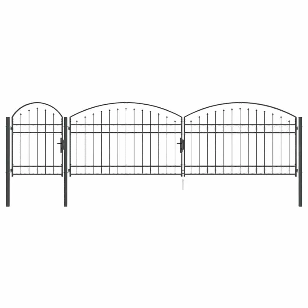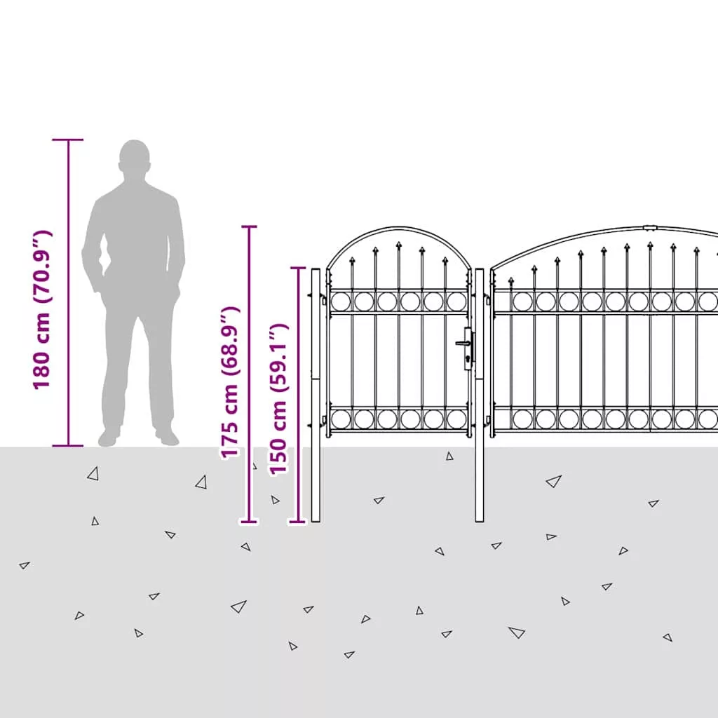 Ez a strapabíró kertkapu íves tetővel modern stílust képvisel, ami az egyszerűséget és a praktikát ötvözi. Tökéletes kültéri helyekhez, mint kertek és teraszok. Vízálló acélból készült, elegáns megjelenést biztosít, miközben biztonságot is ad a kerted területén. A letisztult dizájn szépen illik a kortárs tájakhoz, mind dekoratív, mind praktikus célokra.