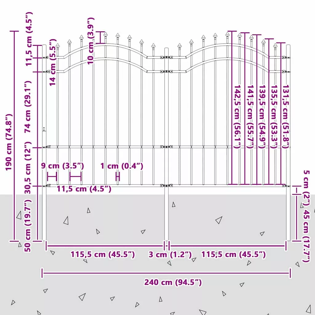 - Anyag: Porszórt acél, ez a kerítés remek ellenállást mutat az időjárás szeszélyeivel szemben. A védő porszórás nemcsak az UV-sugaraktól védi a felületét, de még szép is, ami tökéletes kültéri használatra.