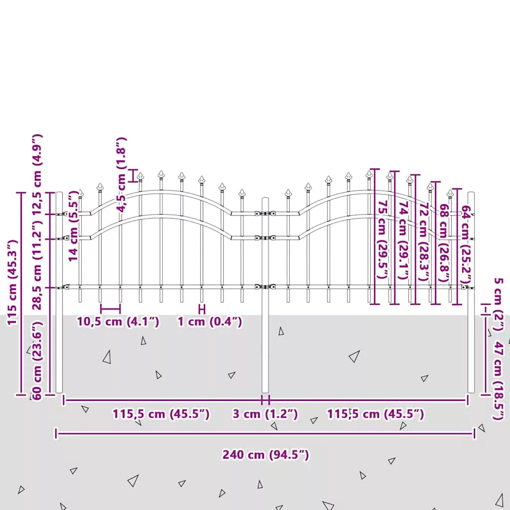 - Anyag: Porszórt acél, ez a kerítés remek ellenállást mutat az időjárás szeszélyeivel szemben. A védő porszórás nemcsak az UV-sugaraktól védi a felületét, de még szép is, ami tökéletes kültéri használatra.