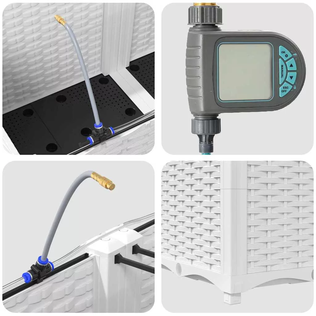 Ez a sokoldalú öntöző virágcserép modern megoldás a kültéri növénykedvelőknek. Aki szereti a praktikus és egyszerű megoldásokat, annak készült, hiszen letisztult formája bármilyen kert vagy terasz kinézetét feldobja. Minimalista dizájnja remekül kiegészíti a kortárs és hagyományos kerteket, elegáns teret ad a kedvenc növényeidnek. Képzeld el ezt a kecses cserepet a kertedben, ahol mindenféle növény és virág elfér, élettel és színnel telítve.
