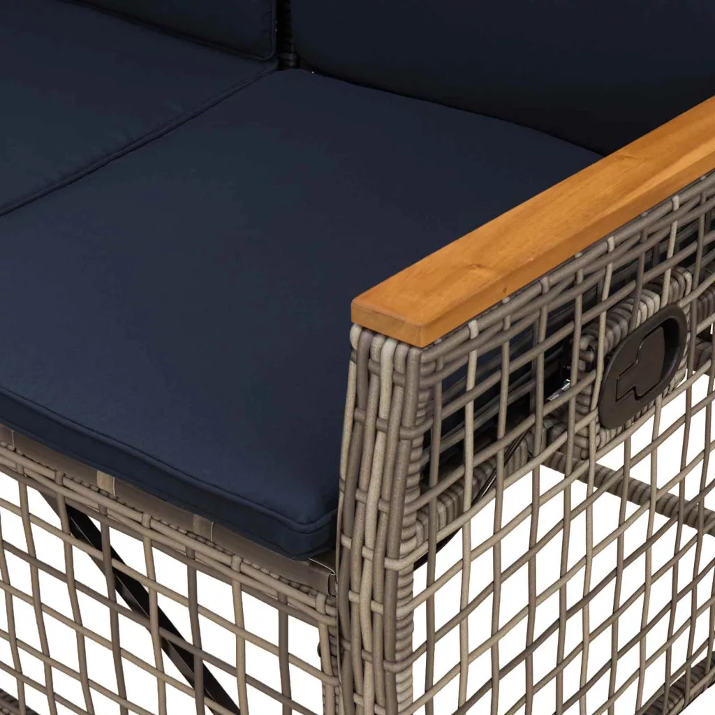 - Stílusos kartámaszok: Lapított rattan kartámaszokkal van felszerelve, amelyek nem csak praktikusak, hanem a dizájnhoz is hozzátesznek, kiemelve a vonalakat és a minimalista stílust, amik bármilyen kertbe illenek.