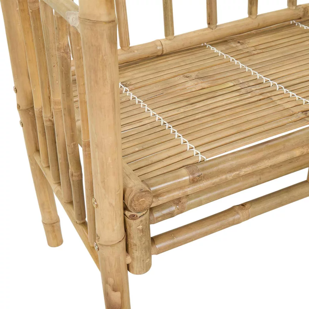 - Anyagok: A kerti pad bambuszból készült, ami megújuló és fenntartható. A bambusz természetes felülete egyedi megjelenést ad, ami jól illik a kert tájához. Szálai erősek, de mégis rugalmasak, így a pad szép marad és jól működik az idő múlásával.