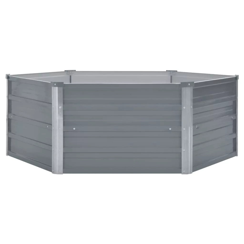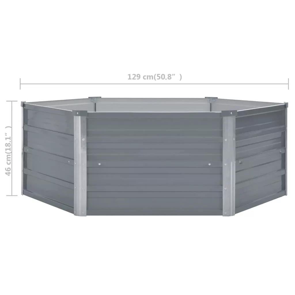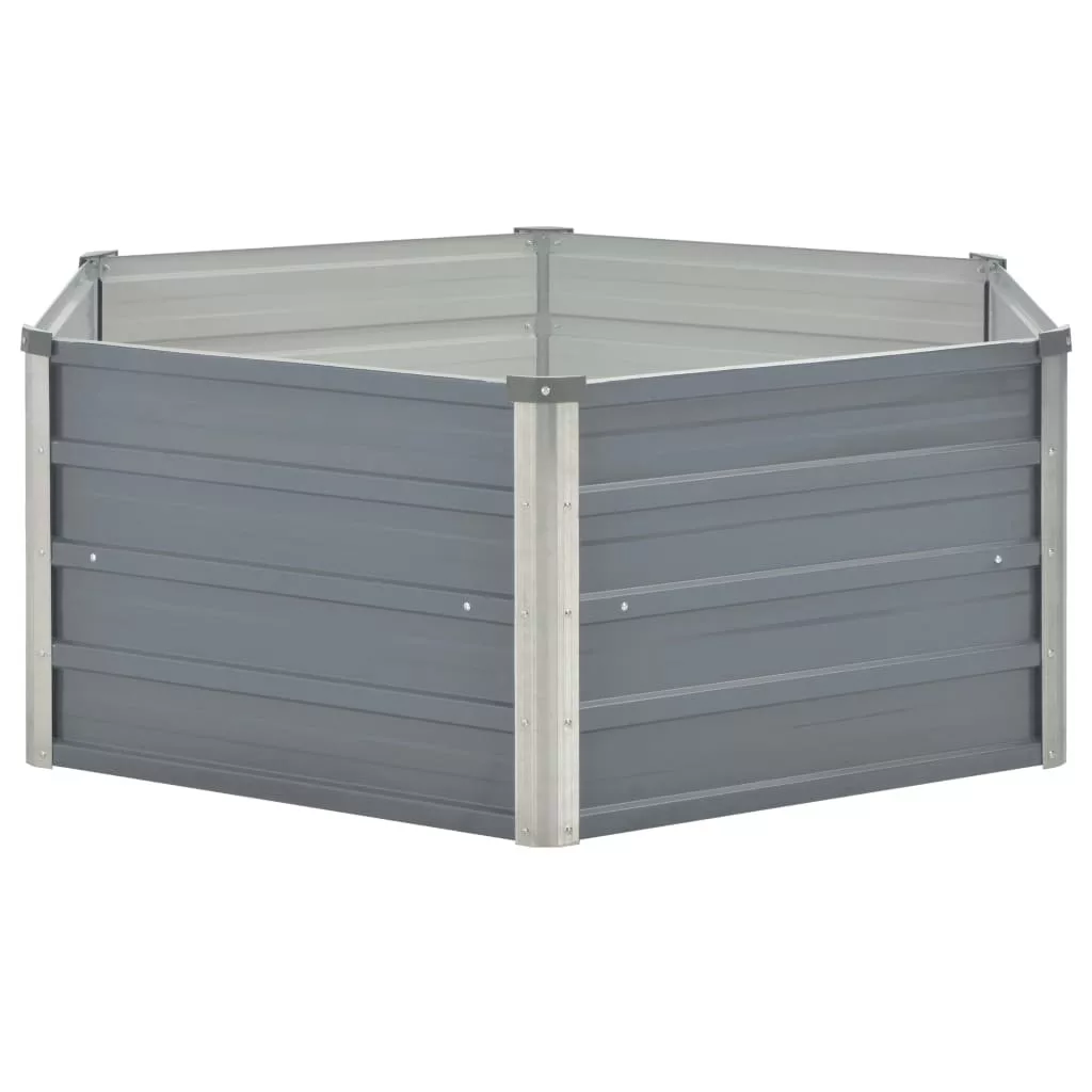 Ez a hatszögletű horganyzott acél virágágyás jelentős számú virágnak és növénynek biztosít helyet.