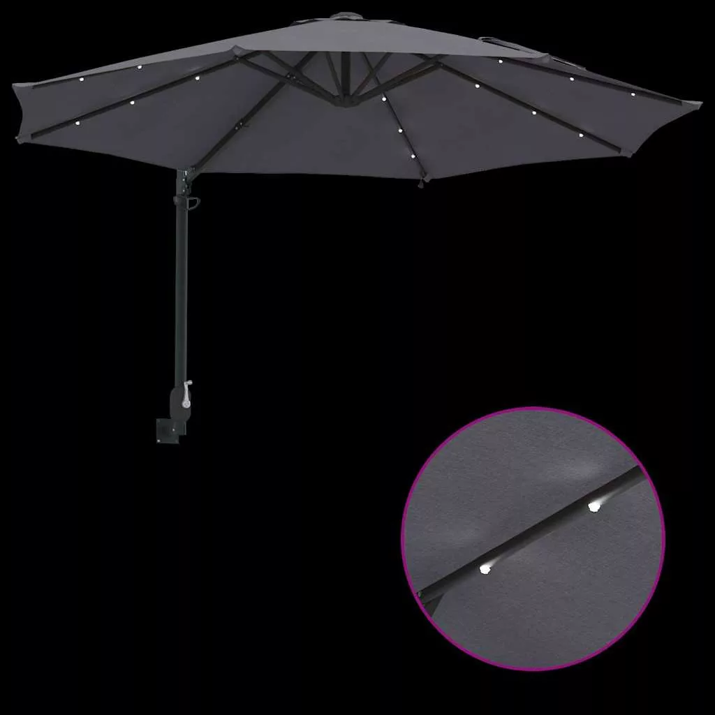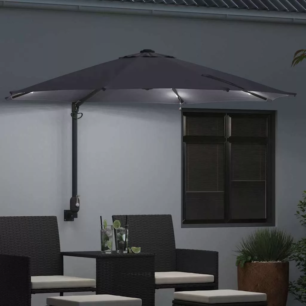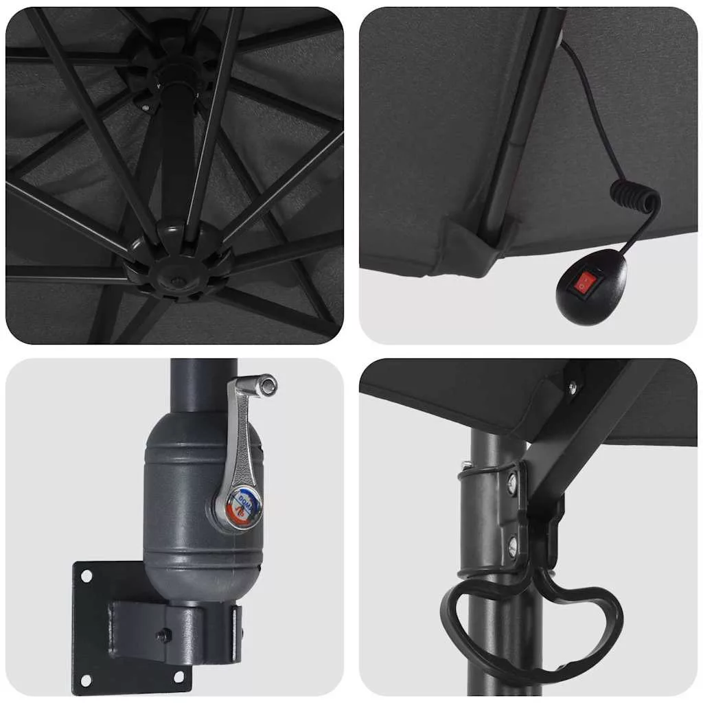 A kert napernyője a kültéri helyek elegáns kiegészítője, nagy ponyvával, ami árnyékot ad a teraszon, kertben vagy verandán a forró napokon. Ez a modern napernyő egyszerű, funkcionális dizájnnal bír, tiszta vonalakat és minimális díszítést ötvöz, így jól mutat kültéri esztétikádban. Ideális nyári bulikhoz vagy csak egyedül eltöltött lazulós délutánokra, kihagyhatatlan a kültéri szórakozásnál.Állítható dönthető mechanizmusa révén a napernyő hatékonyan véd a nap erős sugaraitól, biztosítva a kellemes élményt a nap különböző időszakaiban. Az LED-szalag világítása nemcsak este teszi hangulatosabbá a helyet, hanem meleg, barátságos fényt is ad, ami szuper eseményekhez vagy csak lazításhoz. A poliészter anyag, amit egy erős acélváz támogat, hosszú élettartamot és esztétikus megjelenést garantál, így folyamatos kültéri használatra is jó. A kézi hajtókar segítségével könnyen nyithatod és zárhatod a napernyőt, ami minden korosztály számára kényelmes.