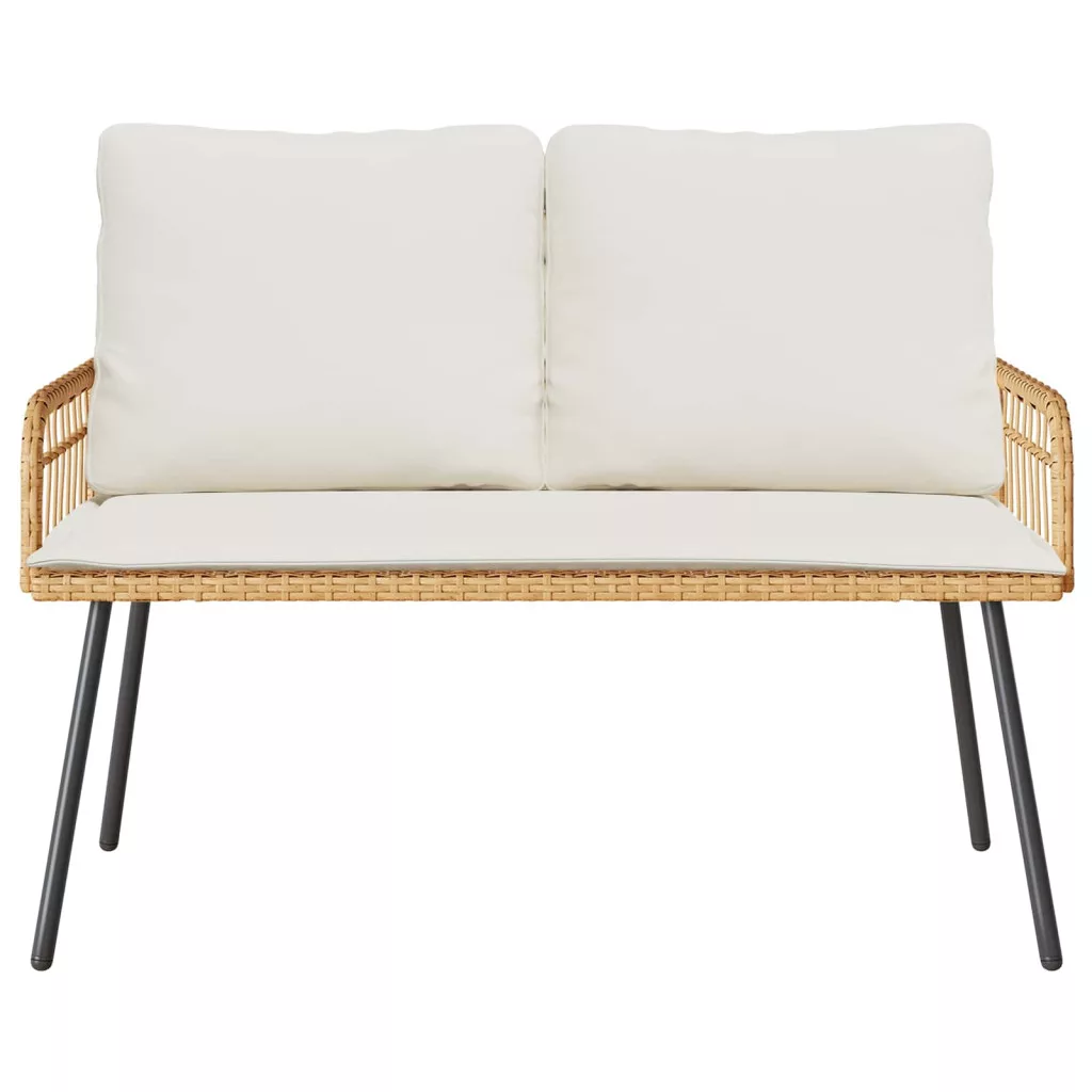 - Gondosan tervezett részletek: Van egy kényelmes, egy darabból készült párnád, szuper poliészterből, ami igazán jó ülni. A polirattan karfa elegáns támogatást nyújt, így még inkább kortárs benyomást kelt. Az acél lábak miatt a pad stabilan áll, bírja a kültéri kihívásokat.