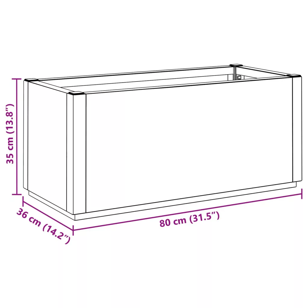 - Ültetvényes doboz méretek: 80 l