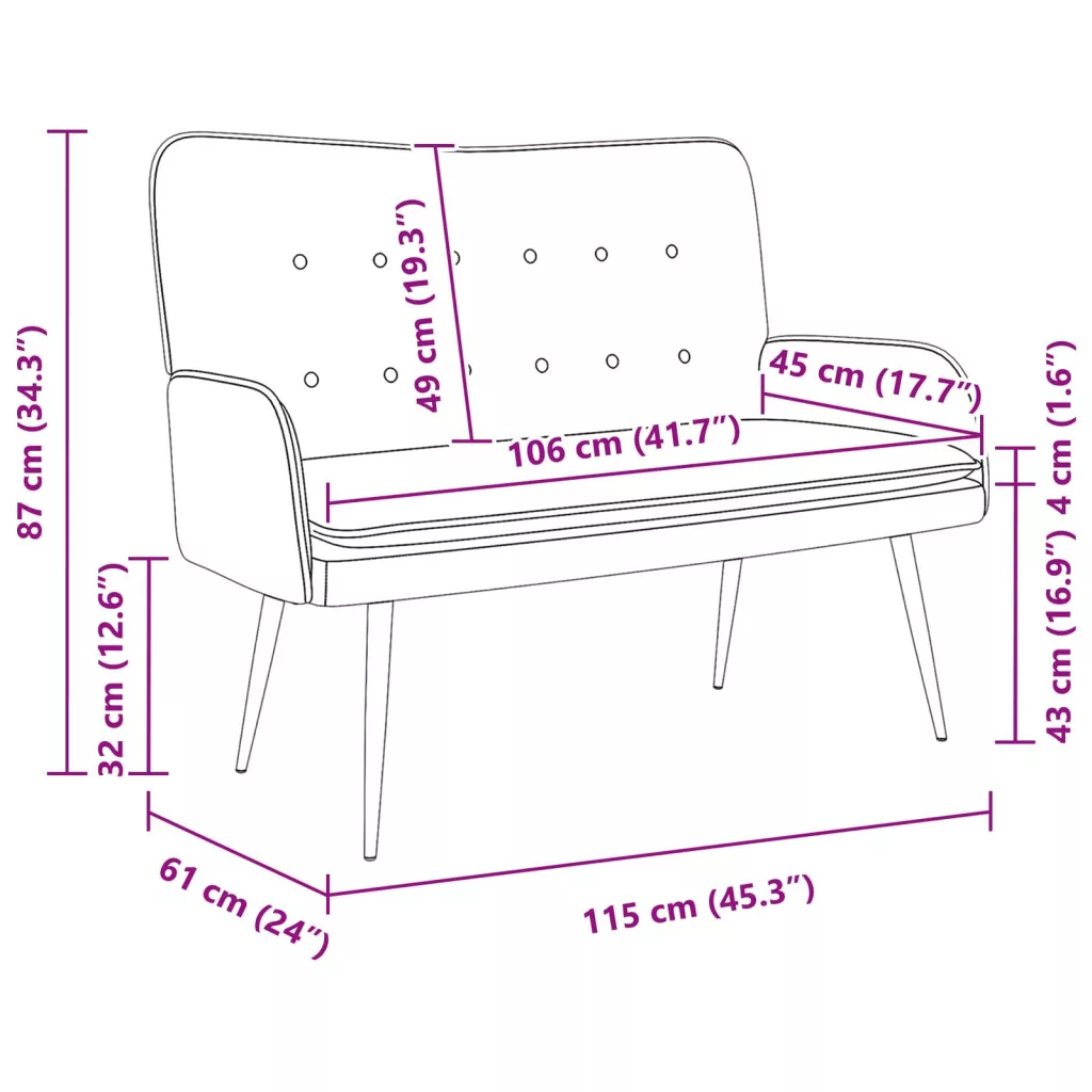 Ez a kétszemélyes kanapé kényelmes és tartós anyagokból készült, poliészter bevonattal, hab párnázással és egy masszív kerettel, amit porszórt acél lábak tartanak.