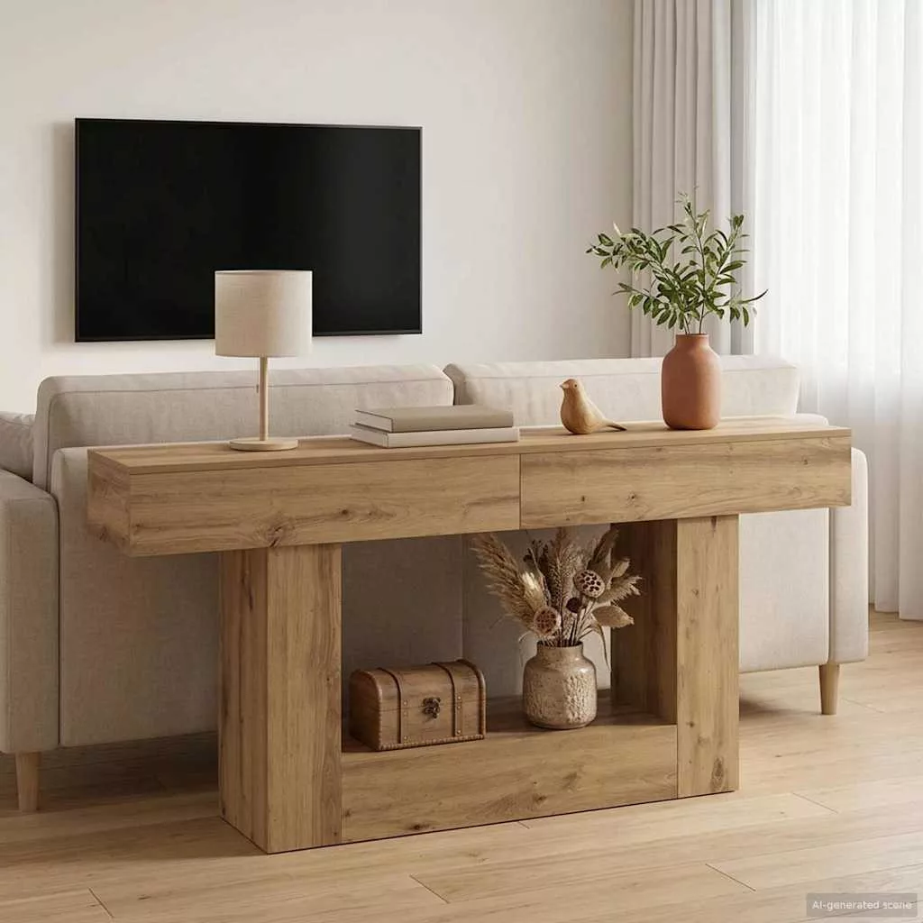Ez a konzolasztal egy kis modern eleganciát ad az otthonodnak, szép, karcsú vonalaival és kortárs dizájnjával. Tökéletes a hideg hónapokhoz, mert szépen illeszkedik a téli dekorációkhoz. Az asztal azoknak való, akik szeretik a stílust és a praktikusságot, bőséges tárolási lehetőséget kínálva, anélkül, hogy csorbítaná a vizuális vonzerejét.