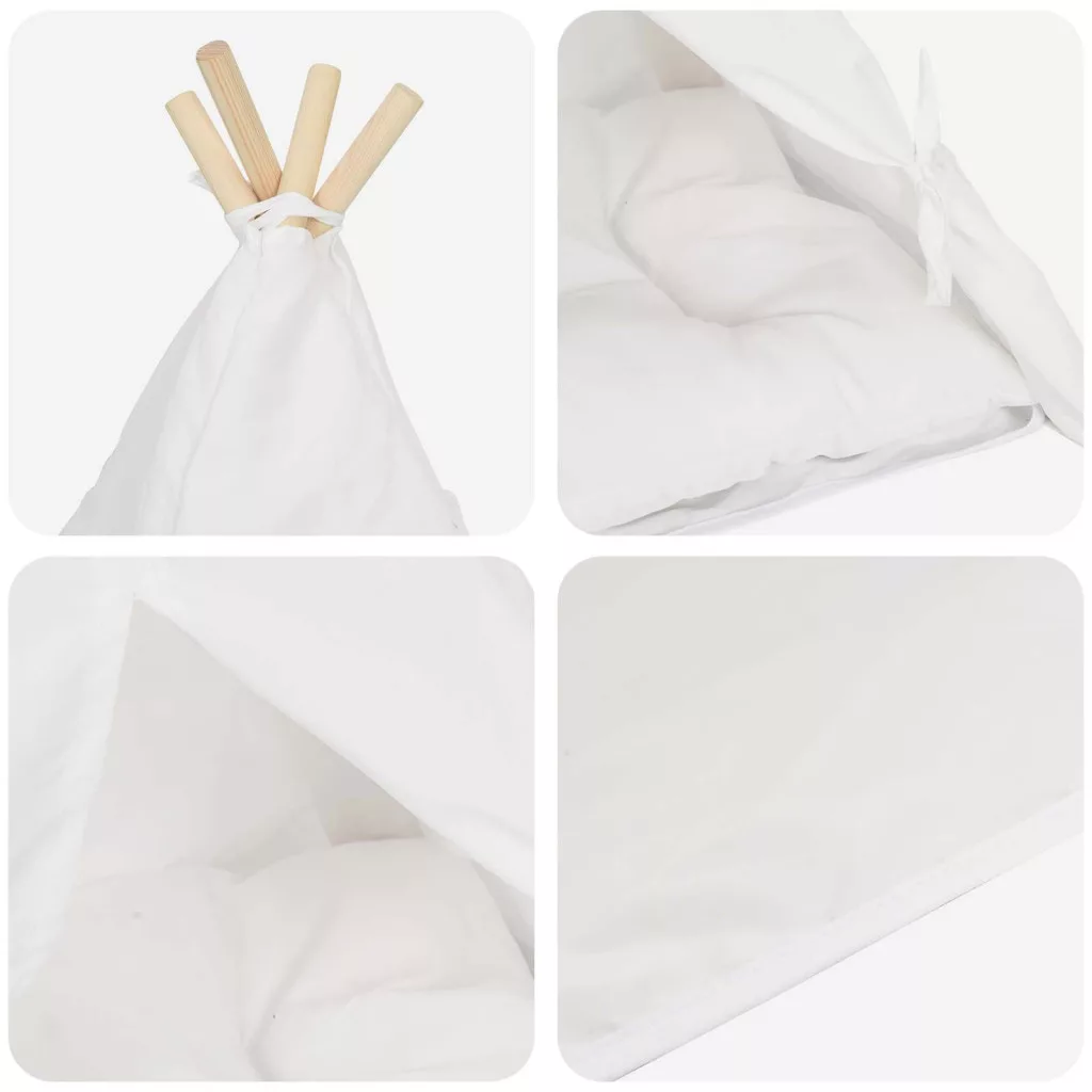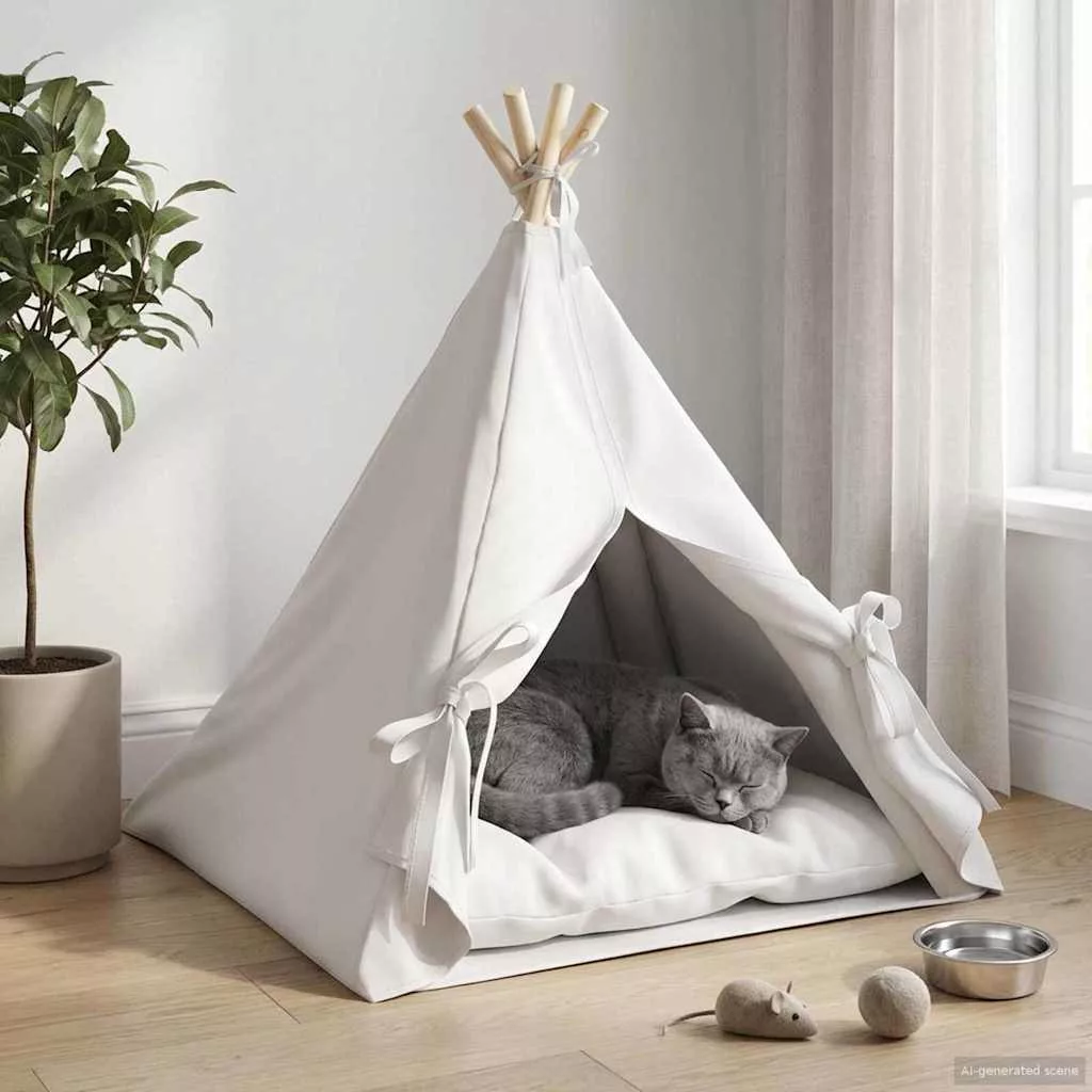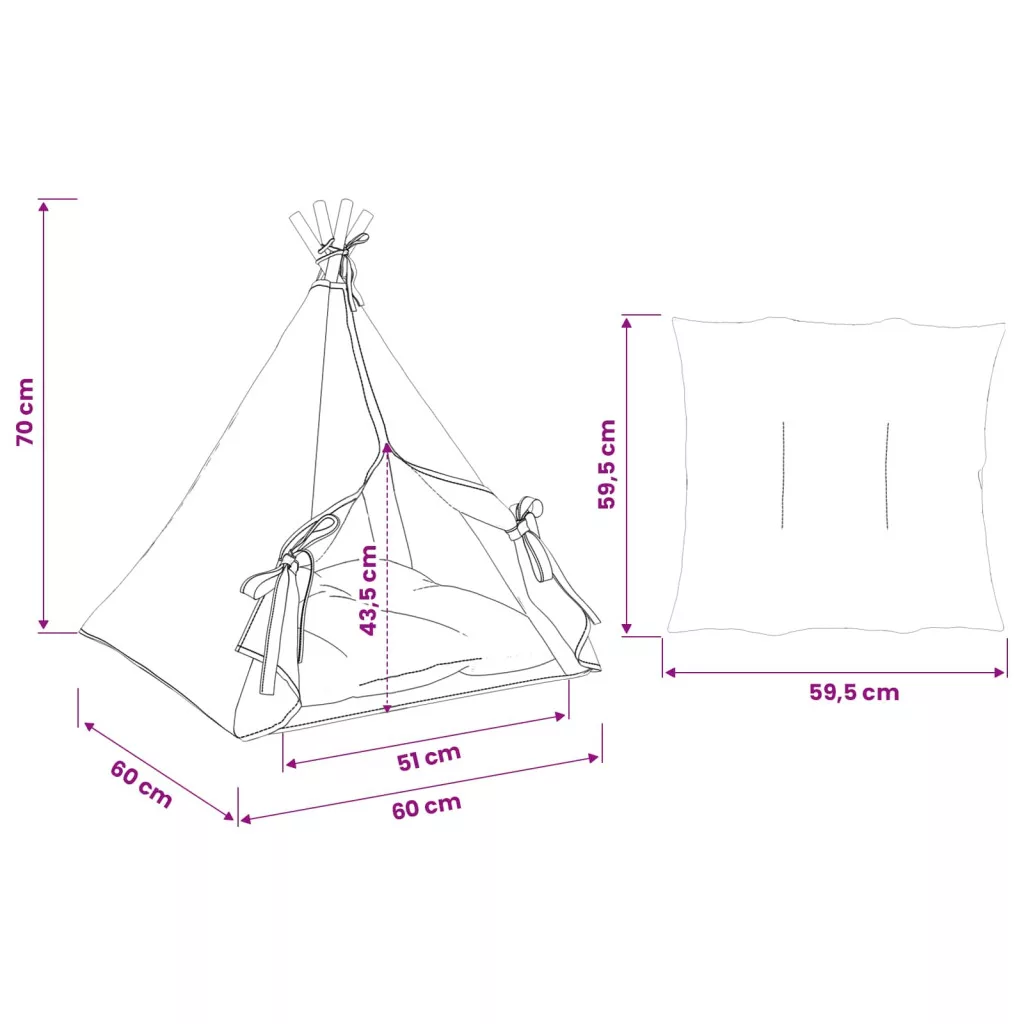 Ez a Pet Teepee a háziállatok számára készült dedikált pihenőhely. Belső terekhez tervezték, megbízható menedéket biztosítva a kedvenceknek, hogy pihenjenek vagy elvonuljanak. A praktikus elemeknek köszönhetően ez a sátor a lakás tökéletes kiegészítője, hogy a kisállatodnak egy kényelmes, dedikált helyet biztosíts a nap folyamán való pihenésre.