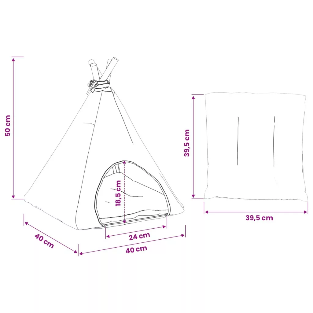 - Beltéri és kültéri használat: Ez a sokoldalú teepee sátor bármilyen környezetben használható, nyújtva egy kényelmes helyet a kisállatodnak, bárhol szükséges. Tartós anyaga ellenáll a különböző használati helyzeteknek, így tökéletes otthonok számára, akiknek belső és külső tér is van.