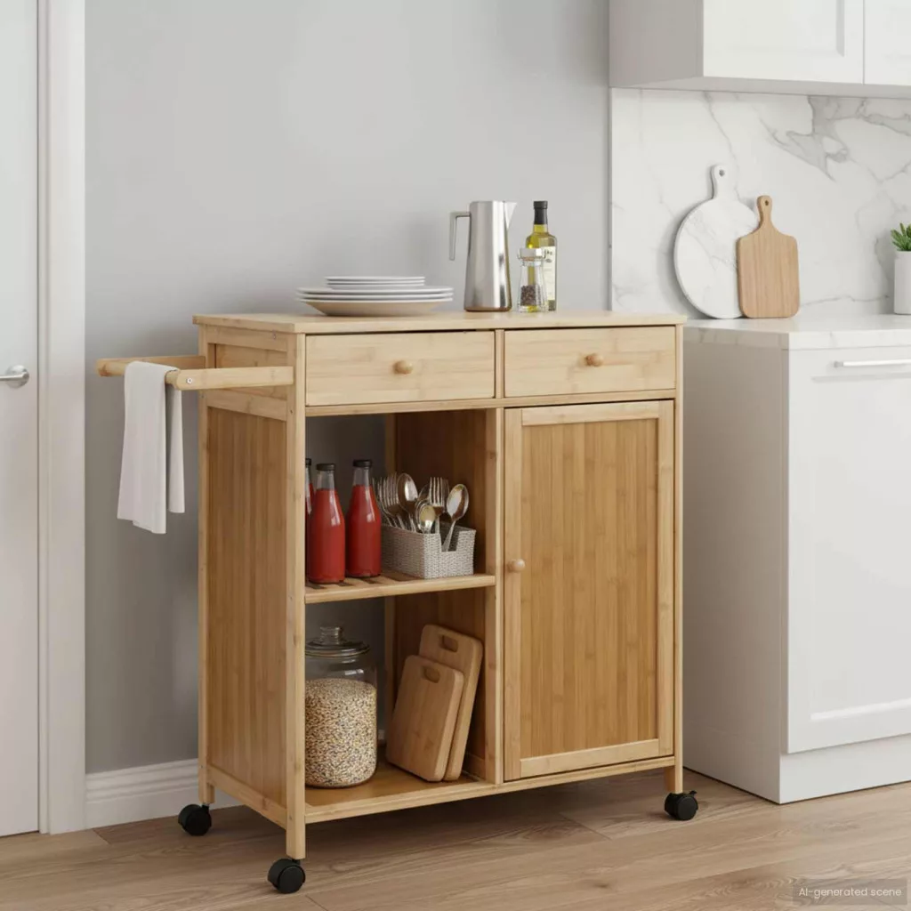 - Modern stílus: Ezzel a modern dizájnnal a kocsi tökéletesen illik a kortárs konyhákba. A bambusz és a letisztult vonalak kombinációja esztétikus hatást kölcsönöz, miközben a semleges színek különféle belső stílusokhoz passzolnak.