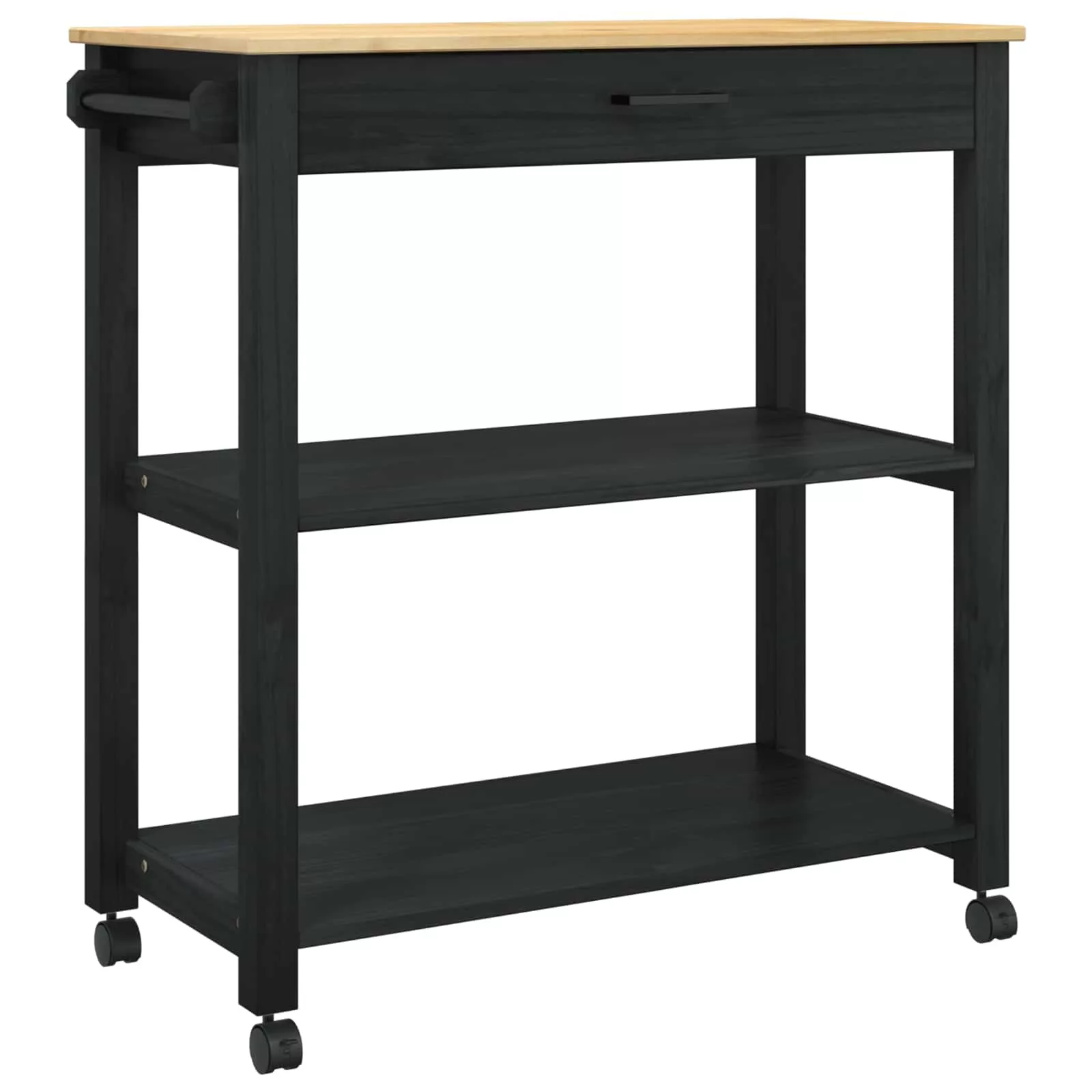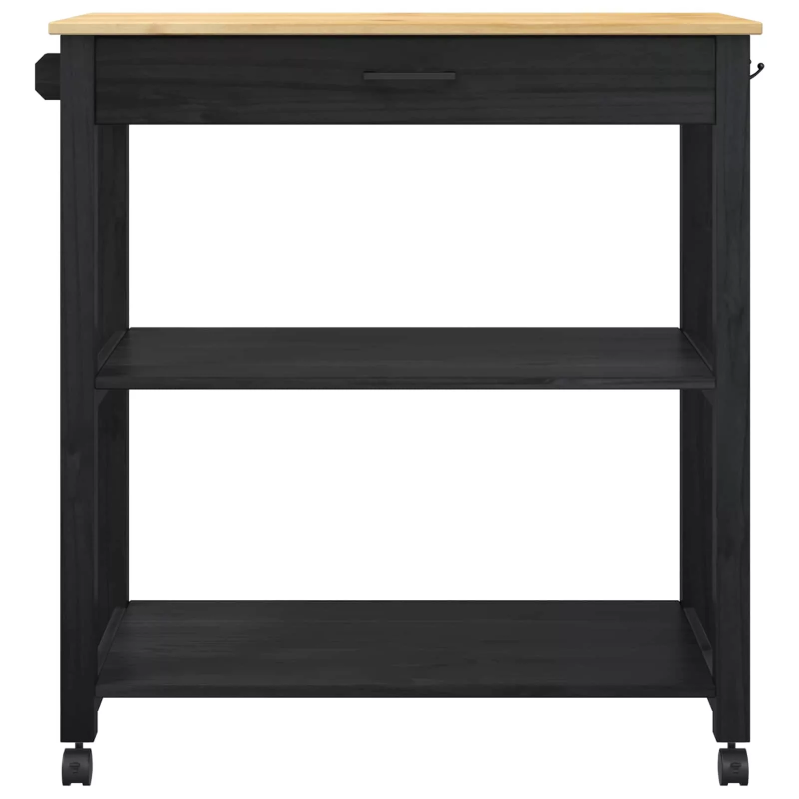 - Tömör fenyőfa építés: A kocsi természetes fenyőfából készült, ami tartósságot és vonzó megjelenést biztosít. Ez a szilárd anyag nagy súlyt is elbír, hosszú életű. A sima felület kiemeli a fenyő gyönyörű mintázatát, így vonzó középpontot teremt a konyhában.