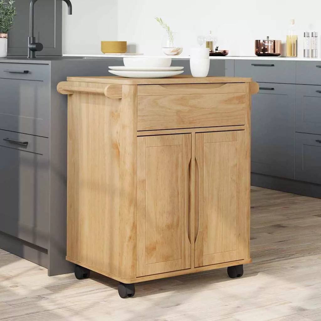 - Prémium kivitel: Tömör fából készült, amit azért terveztek, hogy bírja a mindennapi használatot. A fenyőfa szép erezete melegséget ad a konyhának, és biztosítja, hogy a kocsi mindig állja a sarat az idő múlásával is. Az esztétika és funktionalitás párosításával igazán különleges hangulatot ad a konyhádnak.