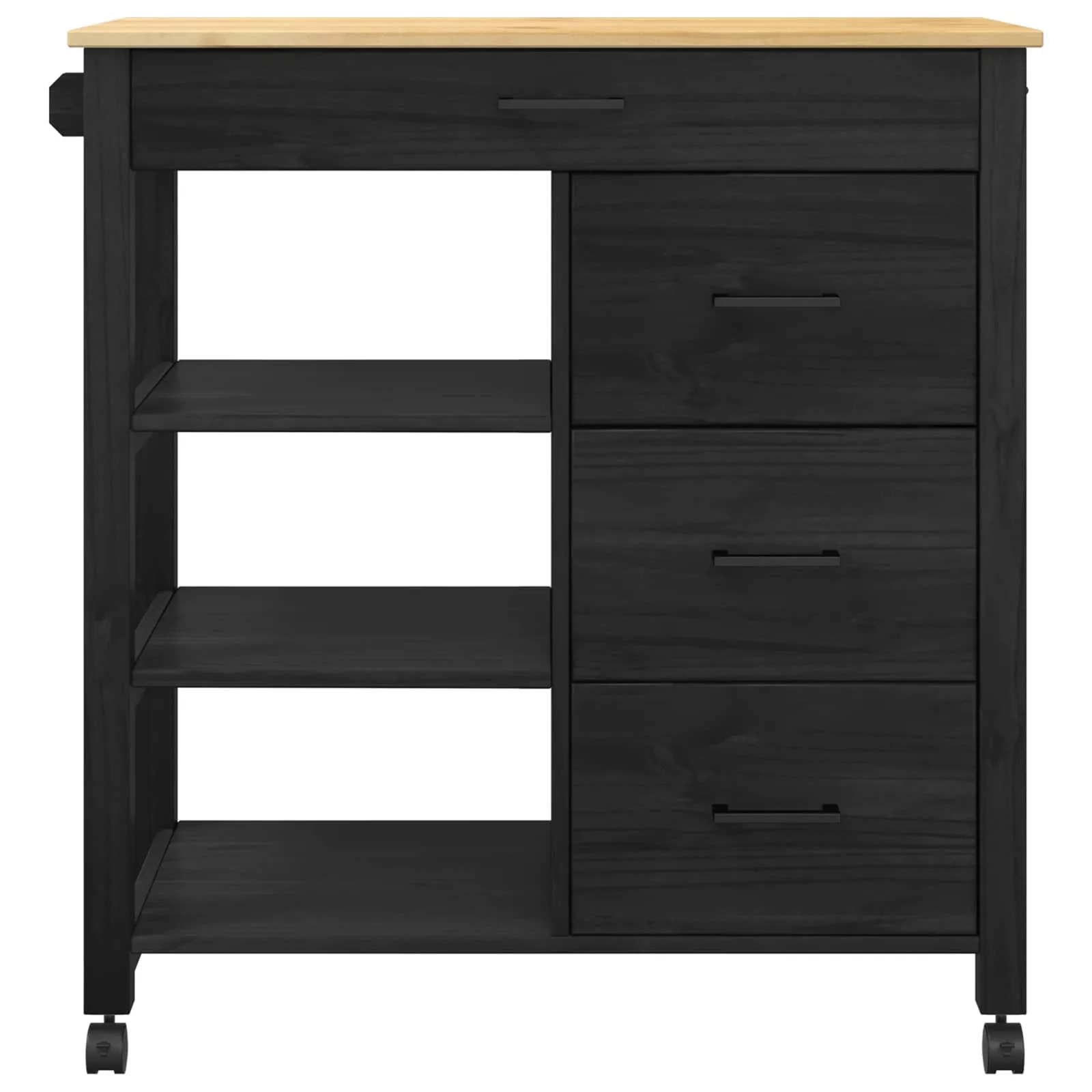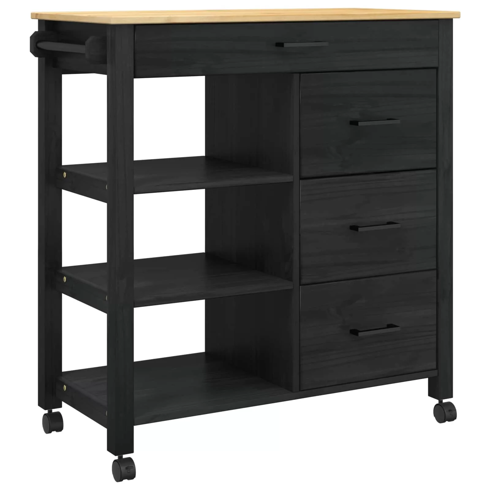 - Funkciók/forma: Négy 360°-ban forgó kerekével a kocsi kiváló mobilitást biztosít. Két kerék zárolható, így a felhasználók rögzíthetik a kocsit, ami stabilitást ad. Rengeteg tárolóhelyet kínál a konyhai eszközöknek, az edényektől a kisebb gépekig, megkönnyítve ezzel a rendszerezést.
