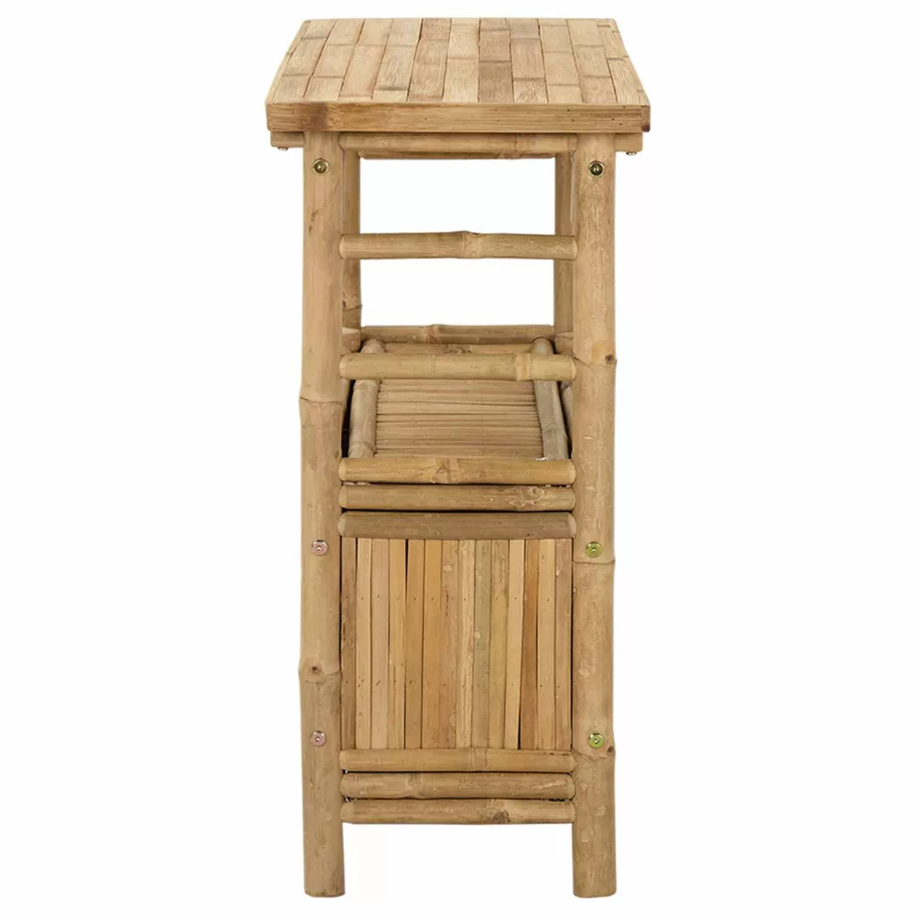 Ez a modern konzolasztal prémium bambuszból készült, ami szuperül passzol bármilyen otthonhoz. Kellemes, egyszerű vonalvezetése és natúr felülete melegséget ad a bejáratoknak, nappaliknak vagy folyosóknak. A konzolasztal elegáns kialakítása miatt ideális díszek bemutatására vagy személyes tárgyak tárolására, így sokoldalú darabként segíti a tér rendben tartását.