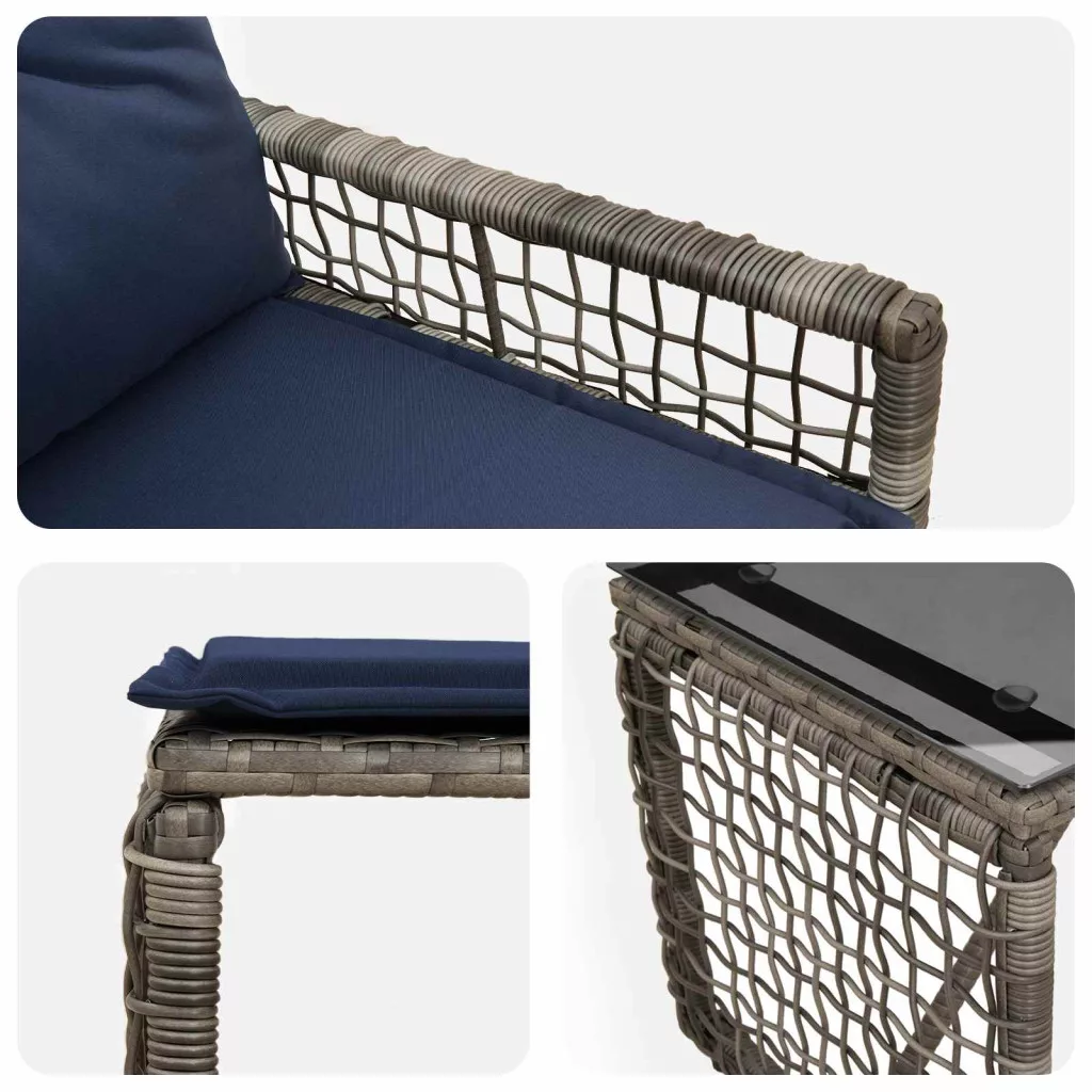 - Kültéri sokoldalúság: A szett kültéri használatra készült, és a belső tér kényelmét hozza a szabadba. Legyen szó lazulásról vagy szórakozásról, tartós felépítése bírja a különböző időjárási viszonyokat, így tökéletes a tavaszi és nyári összejövetelekhez a kertben vagy teraszon.