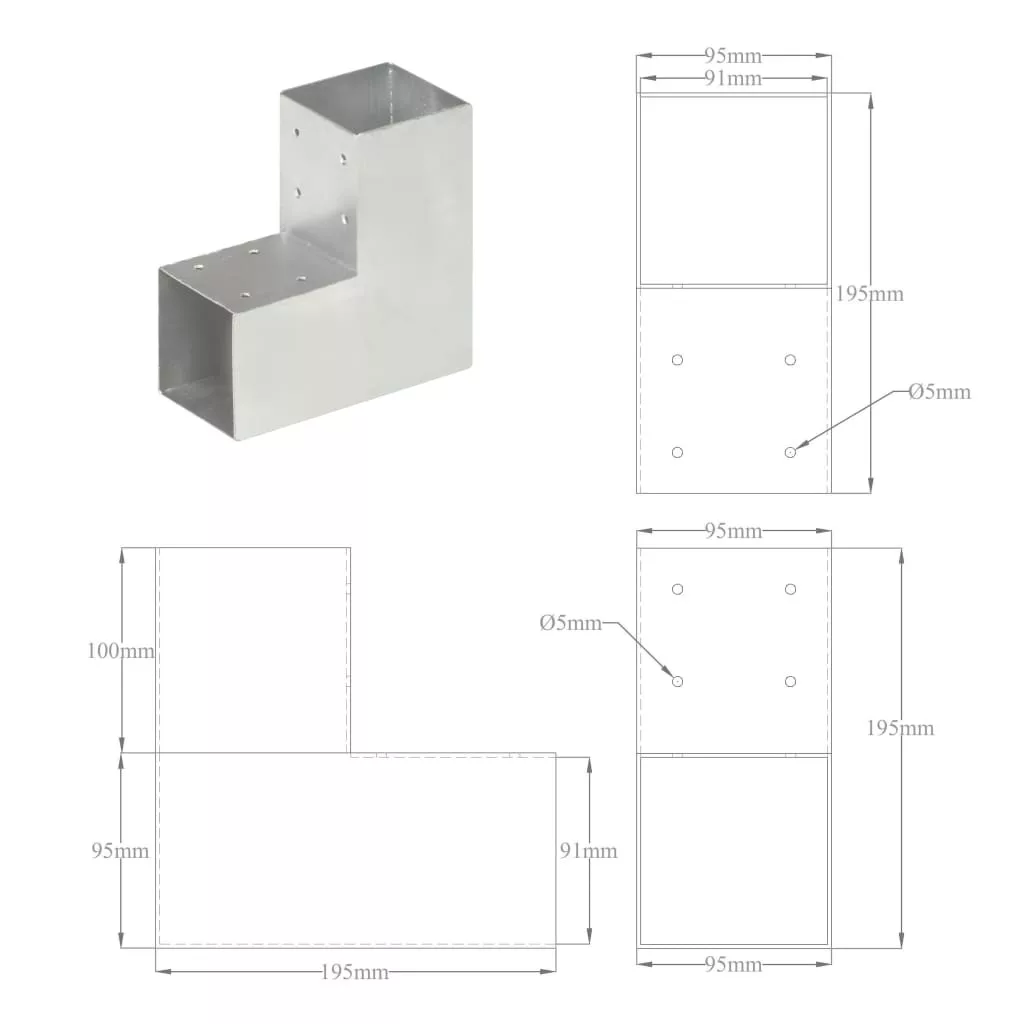 A horganyzott tartó összeköti és stabilan tartja a gerendákat. Az összes csatlakoztató gyári lyukakkal lett ellátva. Ez a gerendatartó 2 négyzet alakú, 91 mm-es fa gerenda számára való.