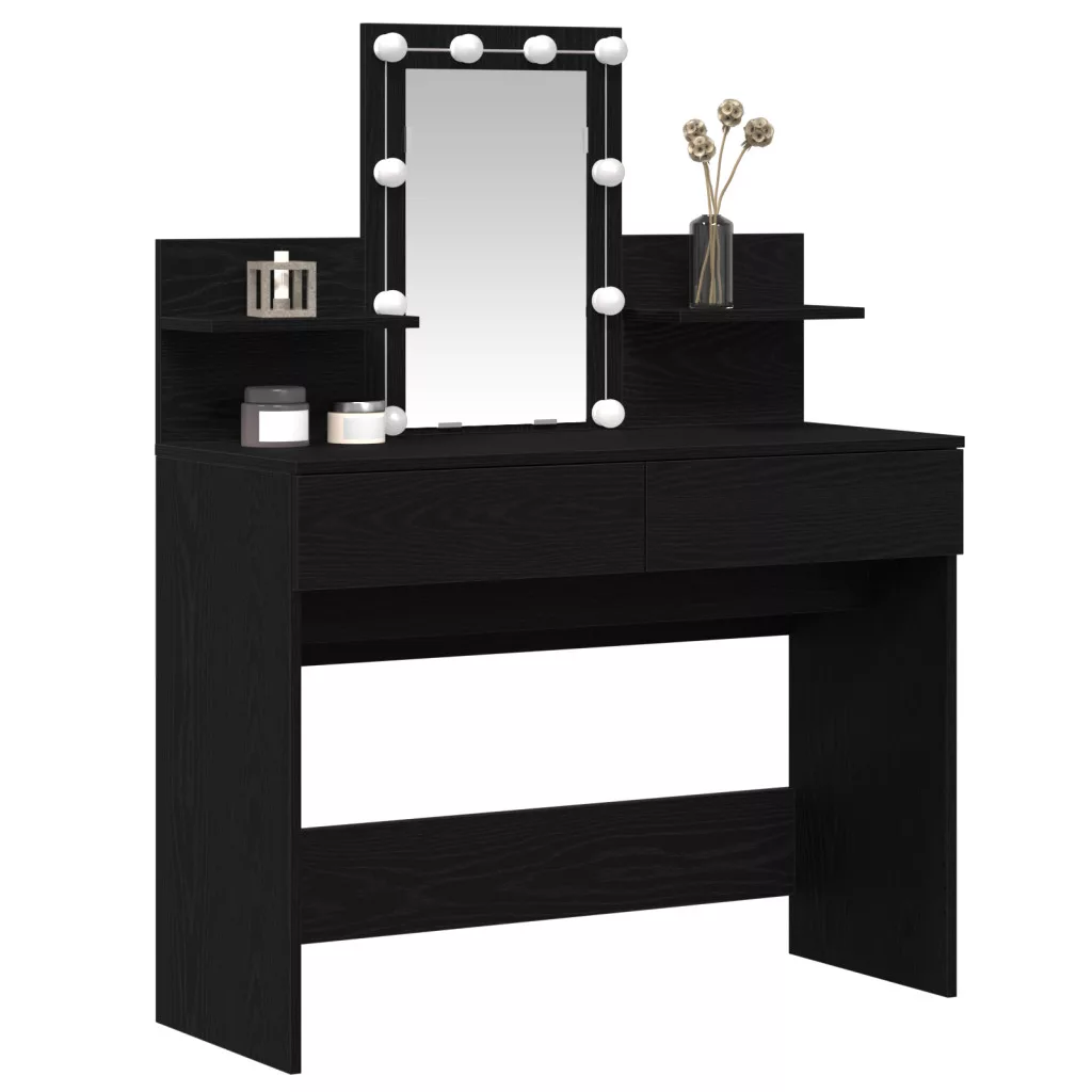 Ez a modern sminkasztal stílusos és hasznos kiegészítője bármilyen hálószobának, ötvözve a kortárs megjelenést a praktikus tárolási lehetőségekkel. A négyszögletes formája miatt rengeteg tárolóhelyet kínál, miközben elegáns hatást kelt. A letisztult vonalak minimalista érzést adnak, így jól illeszkedik a modern belső terekhez. Ez a sokoldalú sminkasztal nemcsak praktikus, hanem dekoratív elem is. A beépített tükör lámpái segítenek a napi rutinokban, kellemesebbé téve a sminkelést.