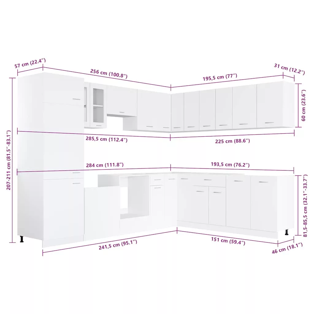 Ez a 14 darabos konyhaszekrény-garnitúra elegáns kialakításával optimalizálja a konyhád terét, és bőséges tárolóhelyet biztosít személyes tárgyaidnak!