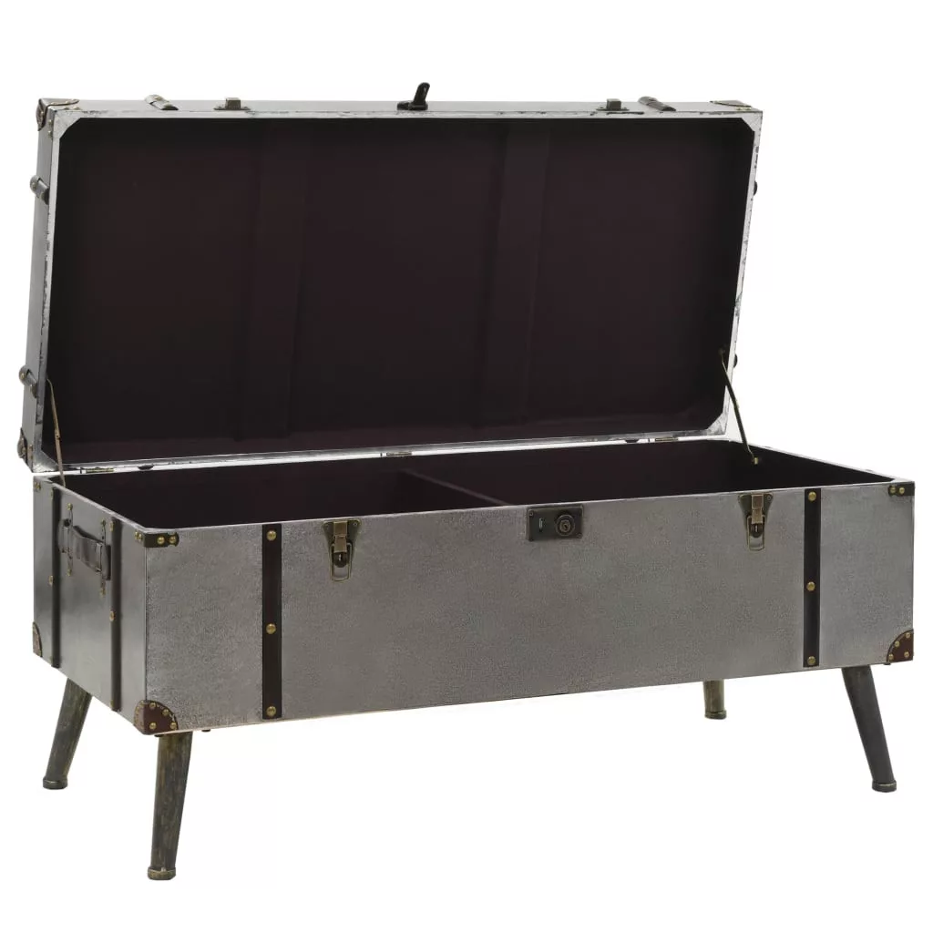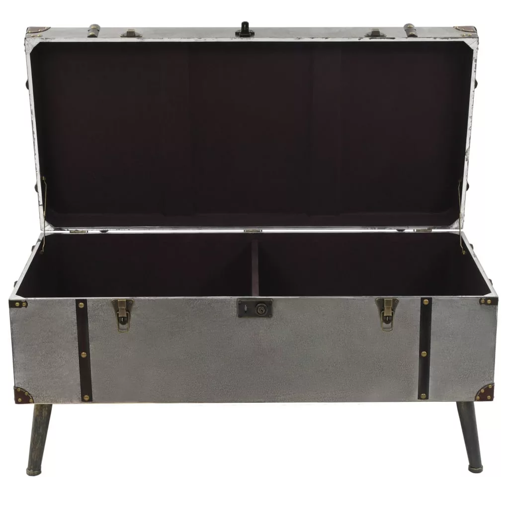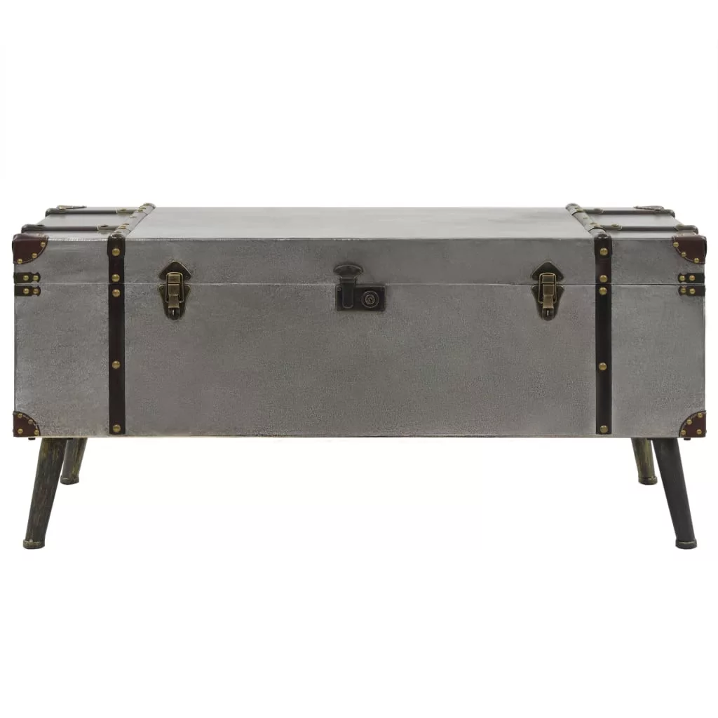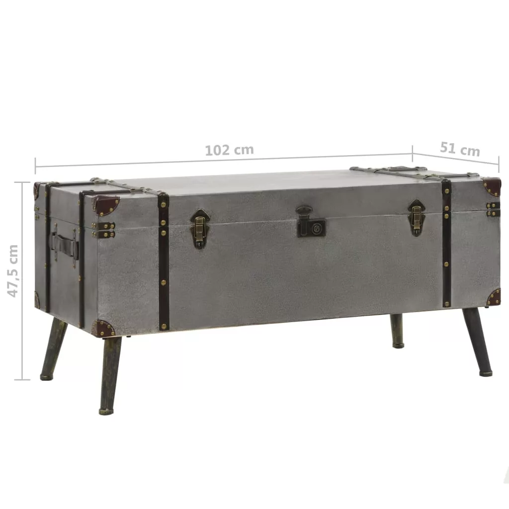 Ez az időtálló és gyönyörű asztal MDF-ből készült, mely alumíniumbevonatot és nemszőtt bélést kapott, valamint erős acéllábakkal lett ellátva, melyek kiemelik rusztikus megjelenését. Az asztallapon elhelyezhet például italokat, vázákat, cserepes növényeket, gyümölcsös kosarakat vagy egyéb dísztárgyakat. A tárolóláda két nagyméretű tárolórekesszel rendelkezik, melyek bőséges helyet kínálnak különféle tárgyak, például plédek, könyvek, magazinok vagy távirányítók tárolásához, amiket csak egy karnyújtásnyira szeretne tudni. A puha és kényelmes fogantyúknak köszönhetően a dohányzóasztal könnyen mozgatható nappalijában.