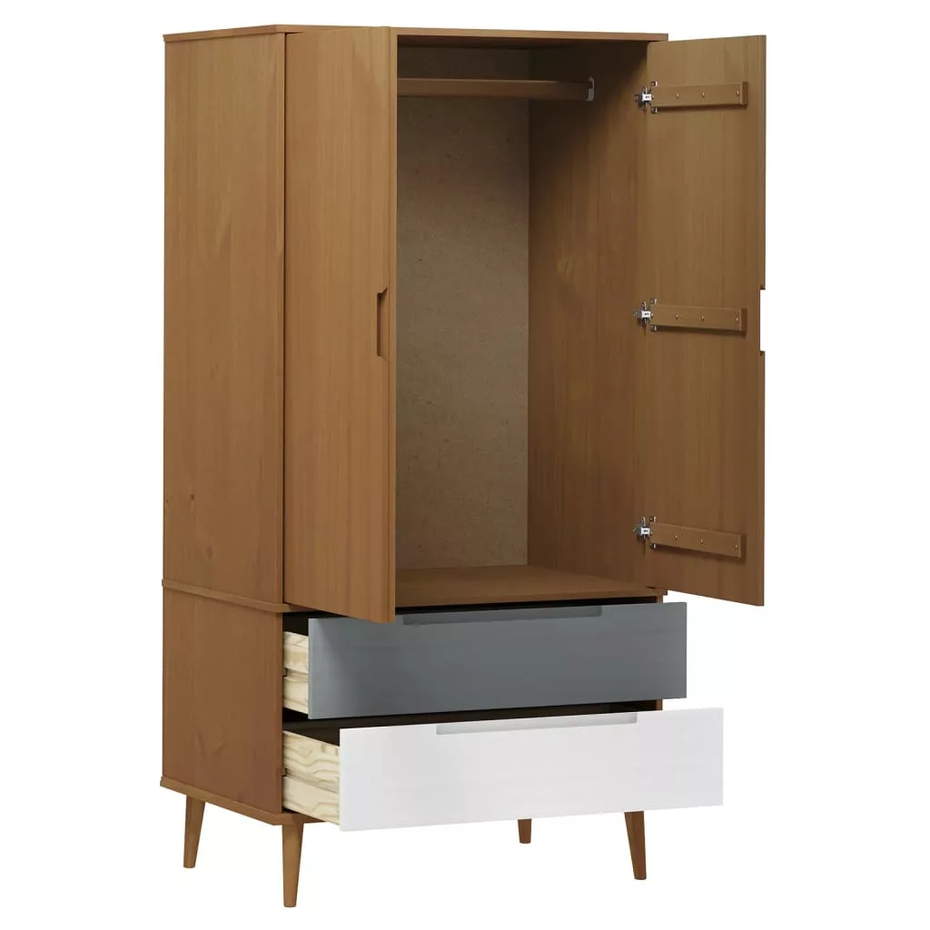 Ez a klasszikus, skandináv dizájnnal rendelkező, fából készült ruhásszekrény bőséges tárolóhelyet biztosít ruhái, cipői és kiegészítői rendezett tárolásához.