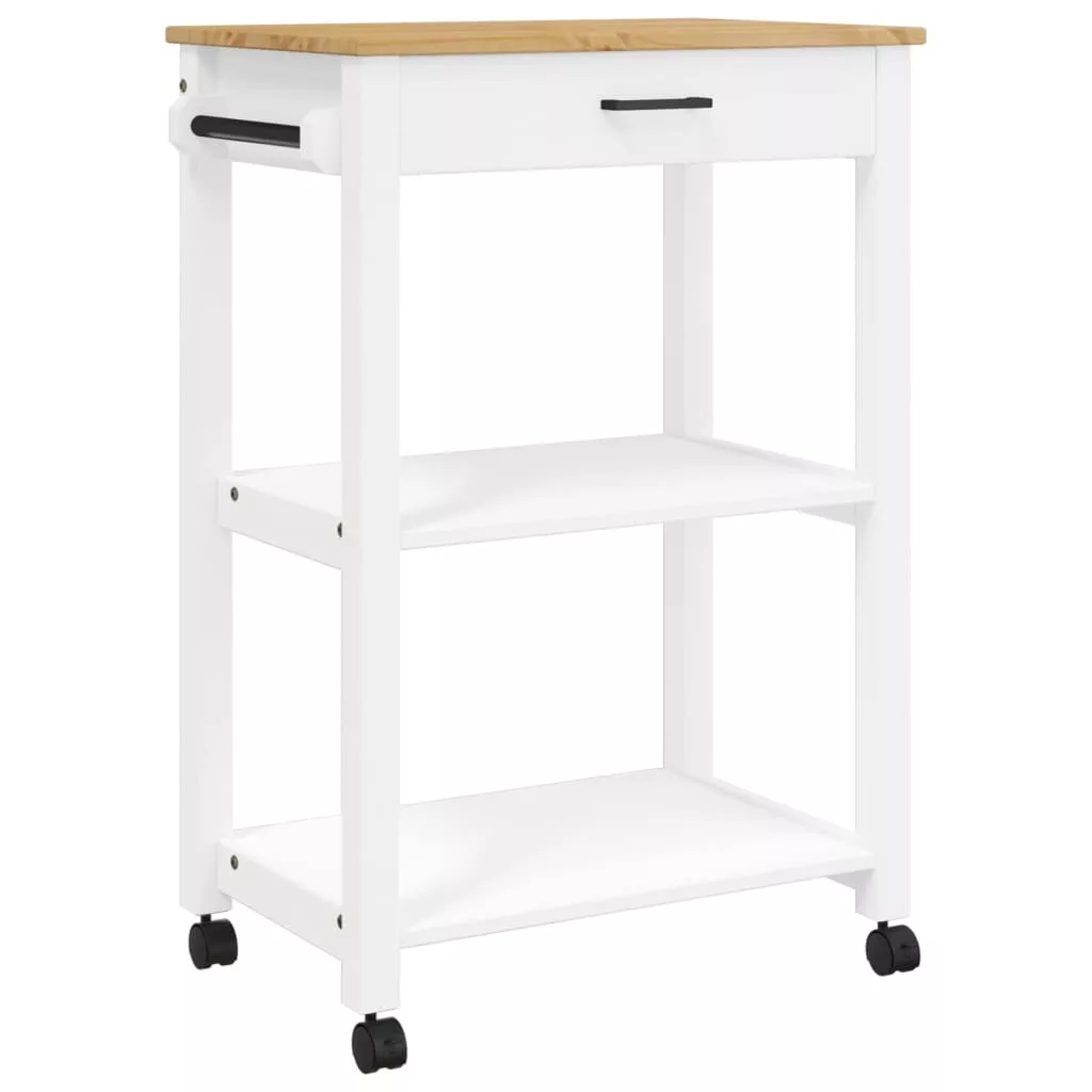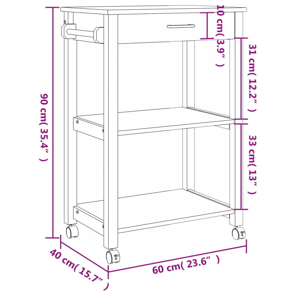 - Strapabíró anyag: A tömör fenyőfa egy gyönyörű természetes anyag. A fenyőfa egyenes erezetű, a csomók pedig jellegzetes, rusztikus megjelenést biztosítanak az anyagnak. A tömör fenyőfából készült konyhai tárolókocsi tartós és robusztus.