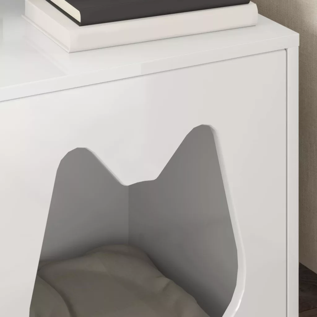 - Szerelt fa: A macska ház szerelt fából készült, ami hosszú távú használatra ideális, stabil és tartós. A sima felülete modern esztétikát teremt, biztonságos helyet biztosítva a macskák búvóhelyéül vagy játékra, anélkül, hogy mérgező anyagokkal kellene foglalkozniuk.