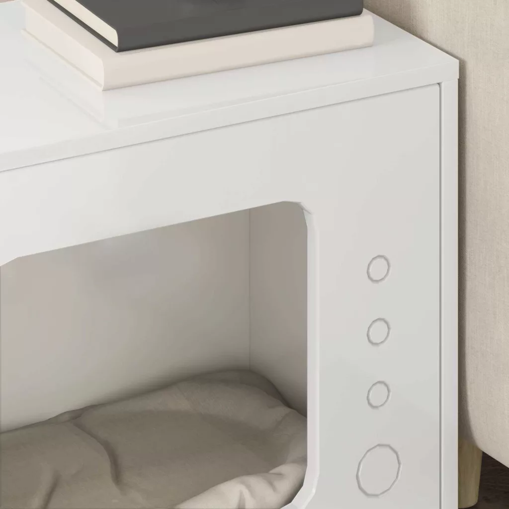 Ez a menő macska ház ötvözi a funkcionalitást és a stílust, kellemes menedéket teremtve a cicádnak. Mérnöki fából készült, jól illeszkedik bármilyen nappaliba. A letisztult vonalak és a minimalista díszítés tökéletesen passzol modern terekhez. Belső használatra tervezve, kényelmes helyet biztosít a macskádnak pihenéshez és játékhoz.
