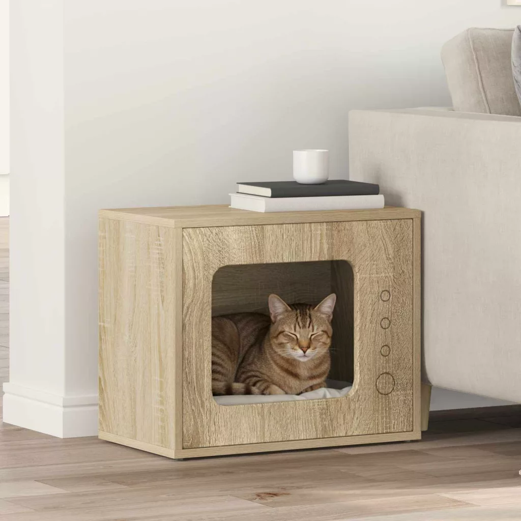 Ez a menő macska ház ötvözi a funkcionalitást és a stílust, kellemes menedéket teremtve a cicádnak. Mérnöki fából készült, jól illeszkedik bármilyen nappaliba. A letisztult vonalak és a minimalista díszítés tökéletesen passzol modern terekhez. Belső használatra tervezve, kényelmes helyet biztosít a macskádnak pihenéshez és játékhoz.
