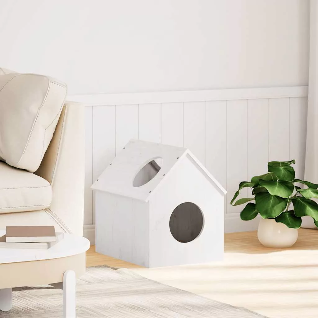 Ezt a fából készült macskaházat úgy tervezték, hogy macskájának privát helyet biztosítson alváshoz és játékhoz.