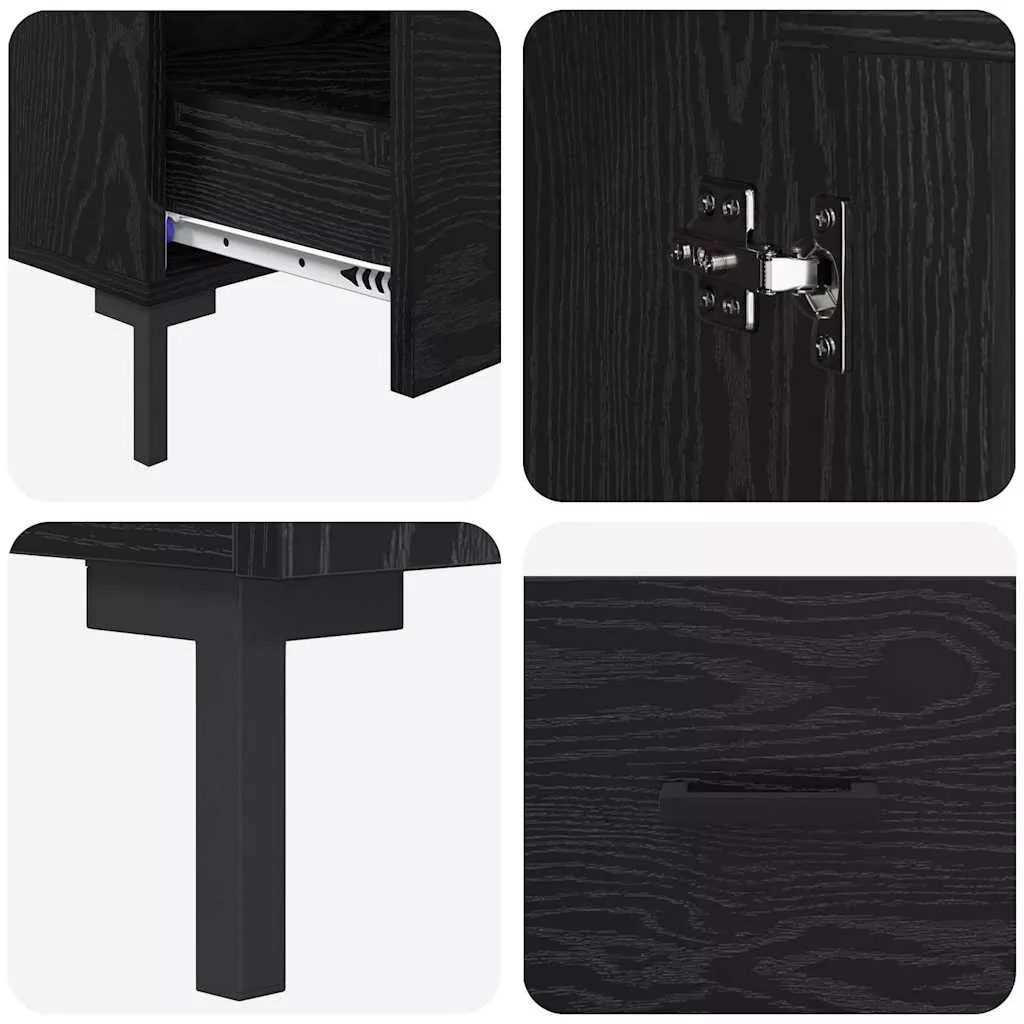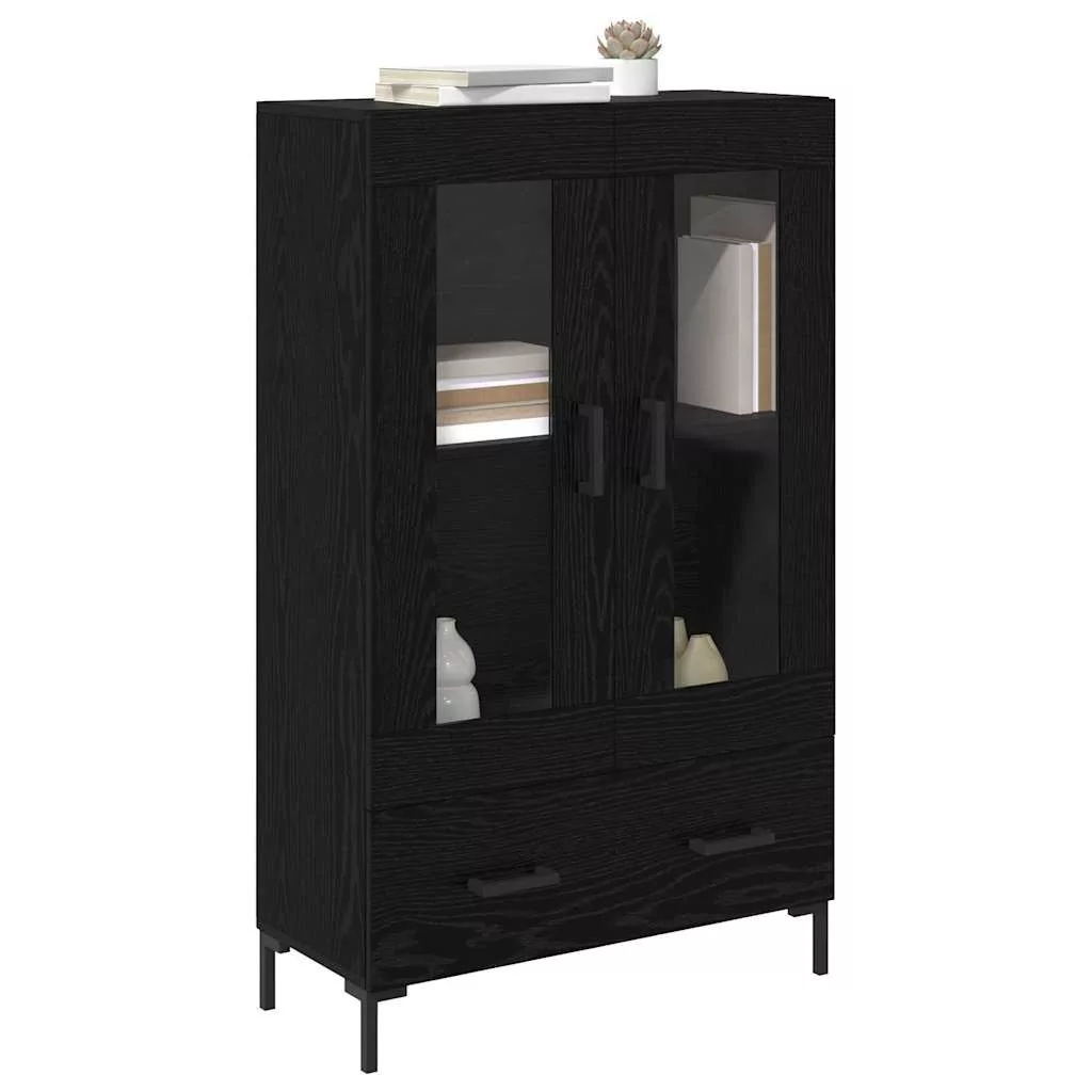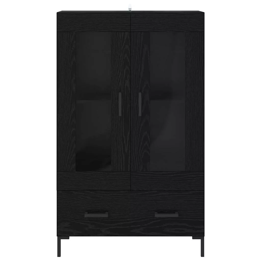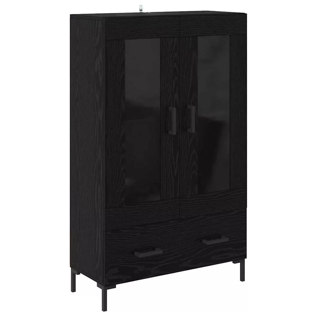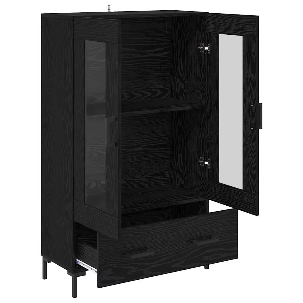 - Elegáns fémkomponensek: Fekete fém négyzet alakú lábakkal és matt felületű fogantyúkkal felszerelve a highboard megőrzi a karcsú és modern stílust. Ezek a fémalkatrészek stabilitást és esztétikai vonzerőt adnak, így stílusos és lényegretörő bútordarab.