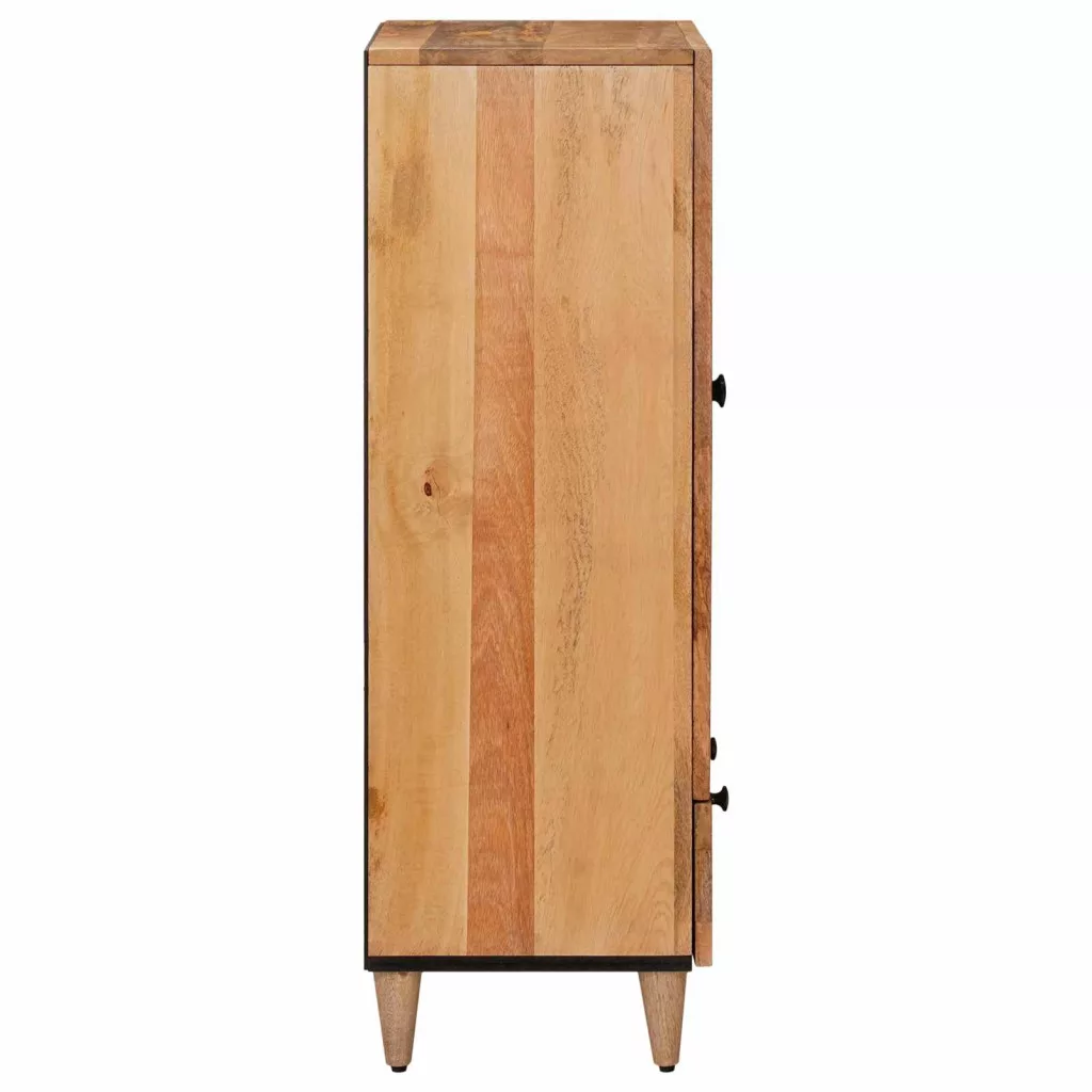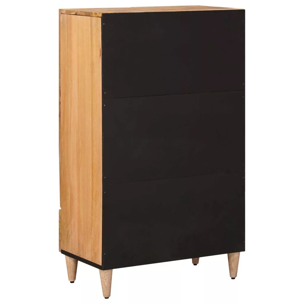 - Anyagok: Remek tömör mangó fából készült, ami ismert megbízhatóságáról és szép mintázatáról, MDF vezeti fel a stabilitását. Ez a kombináció nemcsak tartósságot ad a highboardnak, hanem kiemeli a lenyűgöző kinézetét is, így könnyen illeszkedik a többi bútordarab közé.