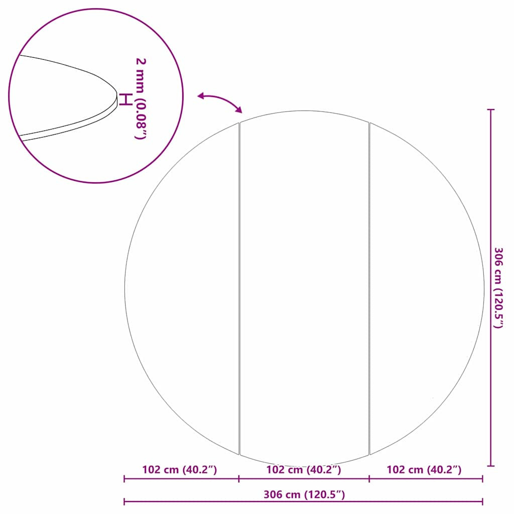 - Általános dimenziók: 306 x 306 x 0,1 cm (Ho x Szé x Ma)
